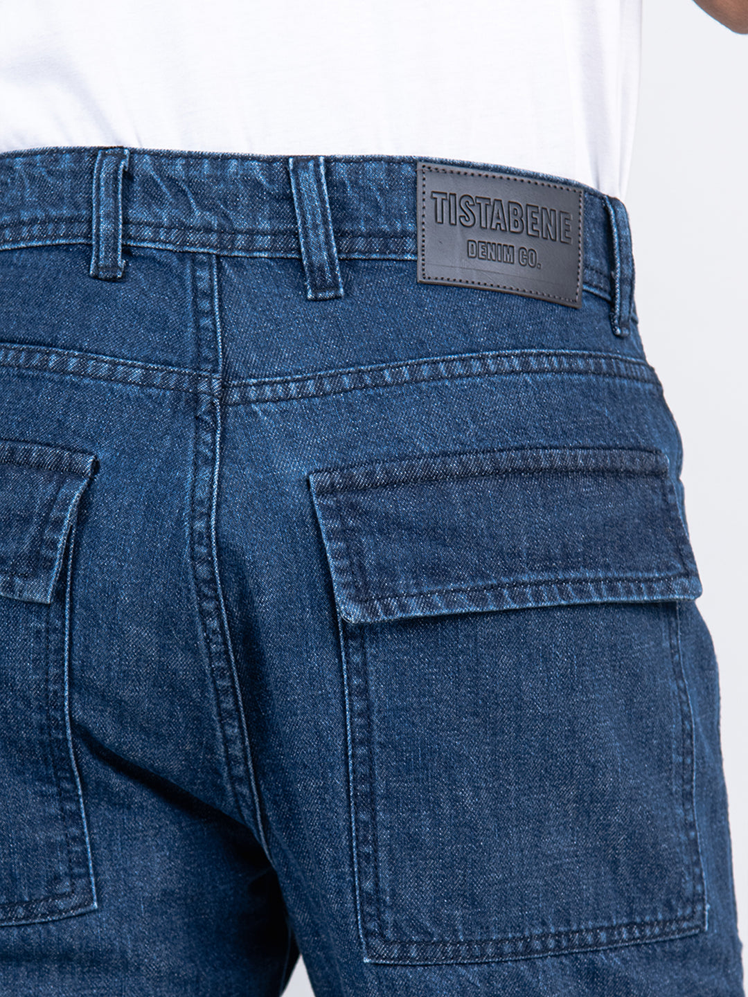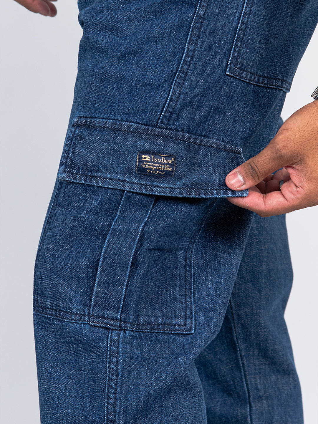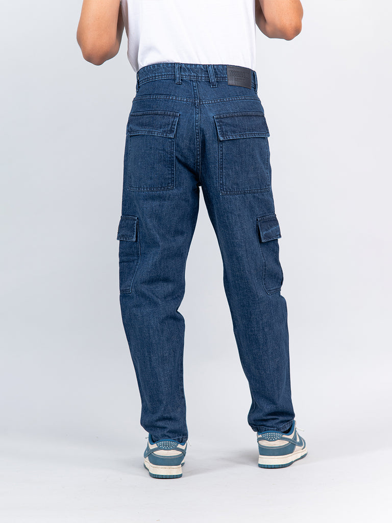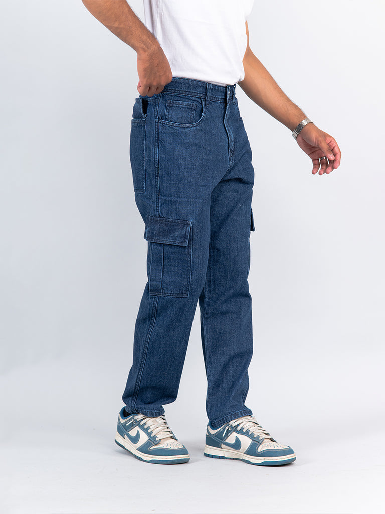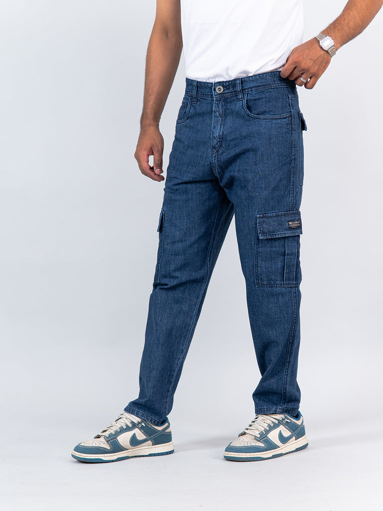 Mid Blue Baggy-Fit Cargo Denim Jeans