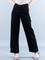Description: Midnight Jet Black Straight Flared-fit Jeans by Tarefaan. Crafted with the exquisite mastery that defines Tarefaan's legacy, these jeans stand as a testament to the harmonious marriage of style, comfort, and craftsmanship. Adaptable to various occasions, they seamlessly transition from formal to casual