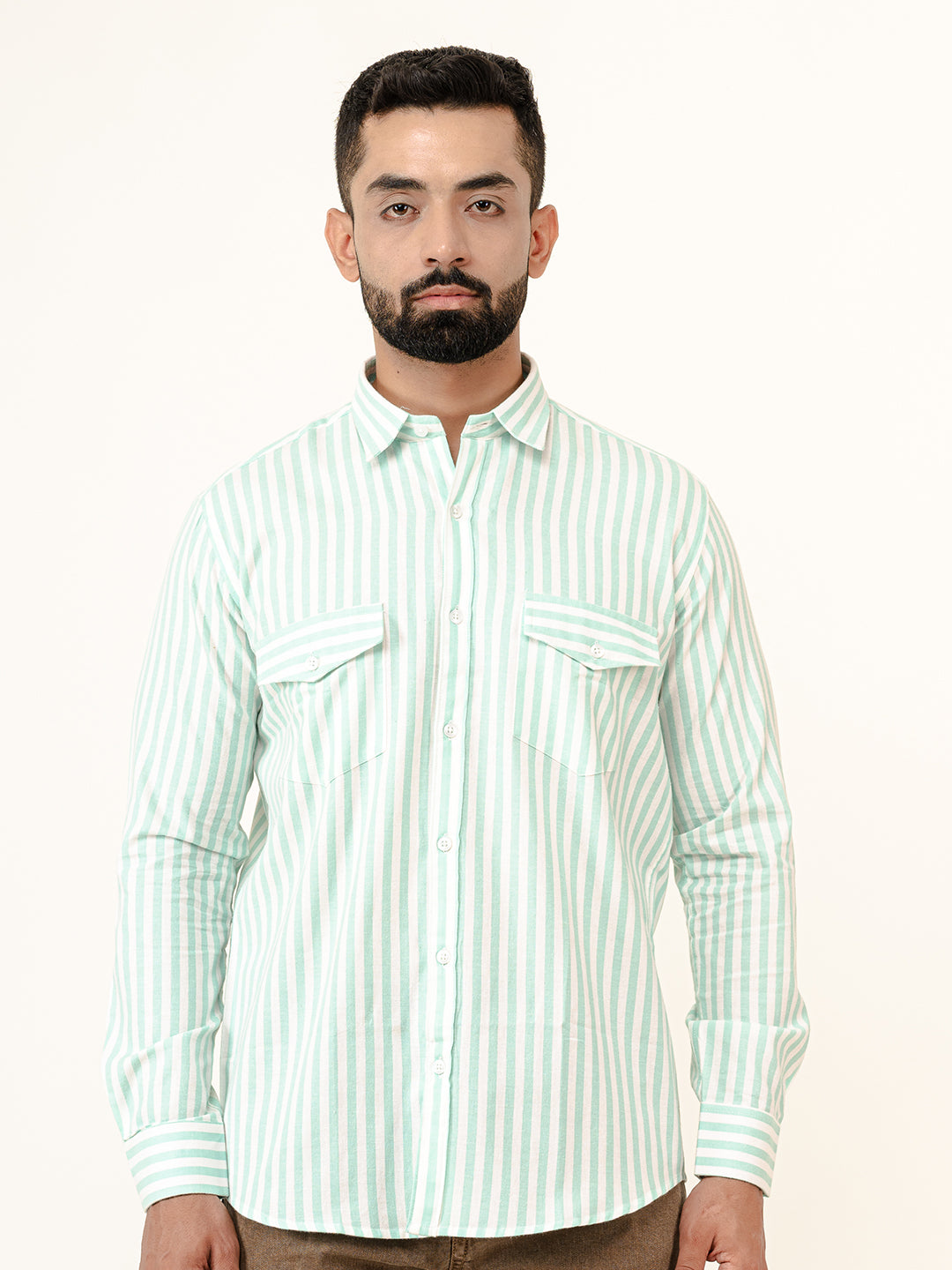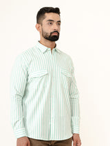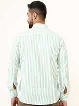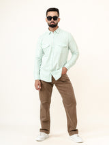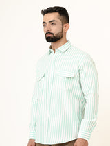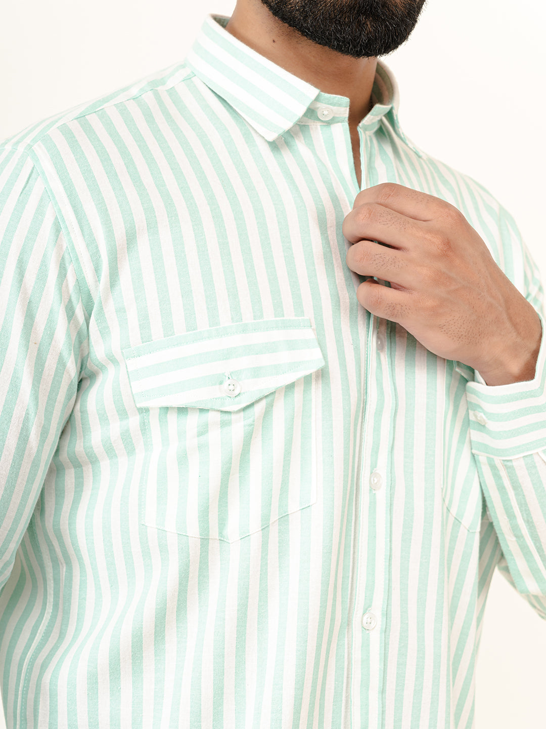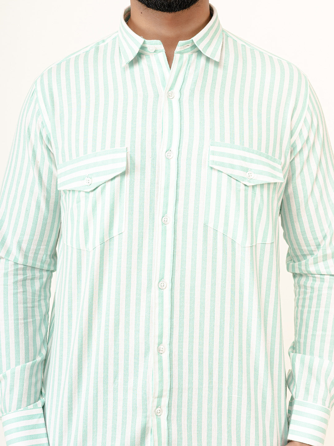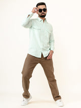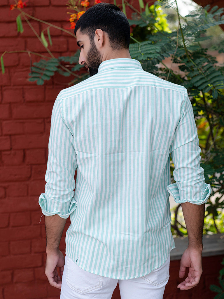 About the product- The Mint Green Striped 2 Pockets Full Sleeves Combed Cotton Shirt can help you stand out of the crowd with its pretty unique colour and style statement along with keeping you comfortable.