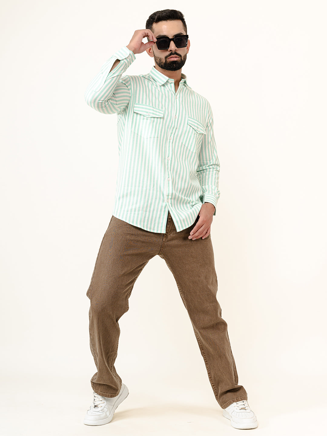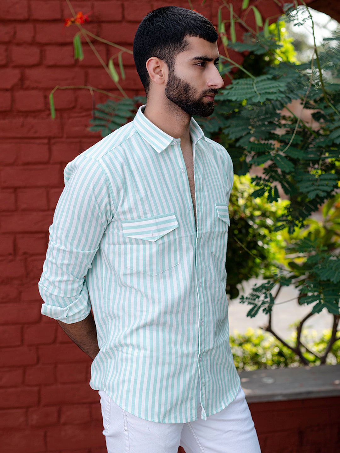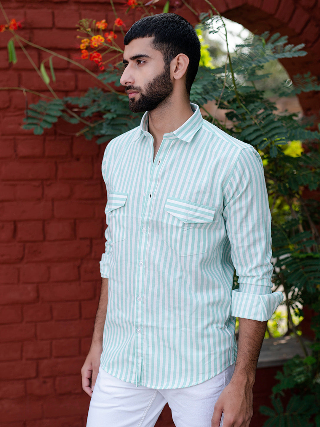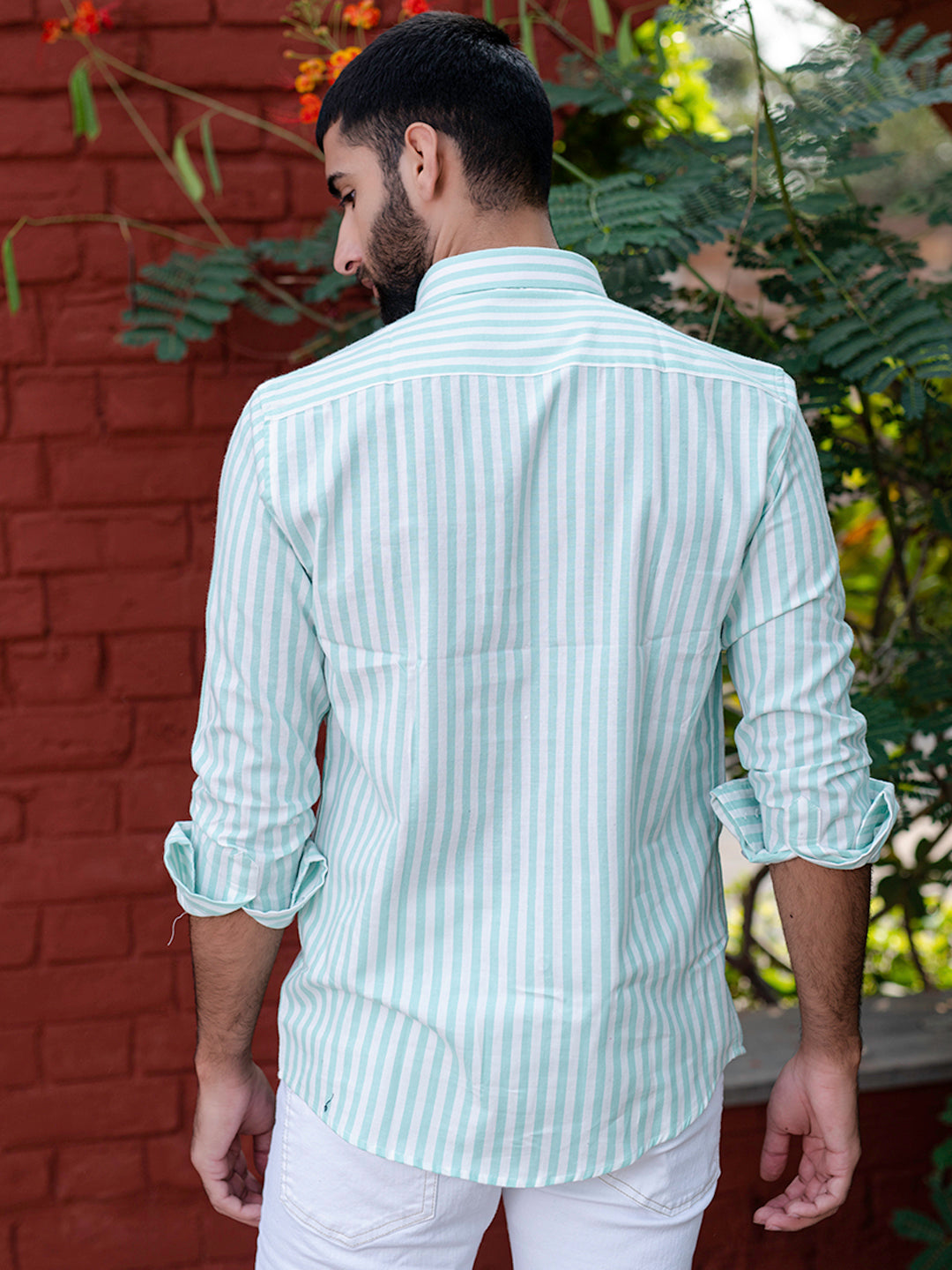 Style note - Pairing the Mint Green shirt with white jeans enhances the look of the shirt and gives a subtle and calm look.