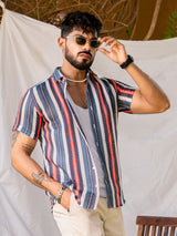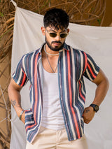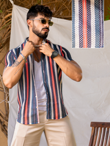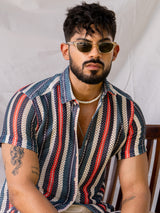 Elevate your casual wardrobe with Multi Colour Vertical Lines Half Sleeve Crochet Shirt for men. This unique piece combines the classic comfort of cotton with the stylish intricacies of crochet design.