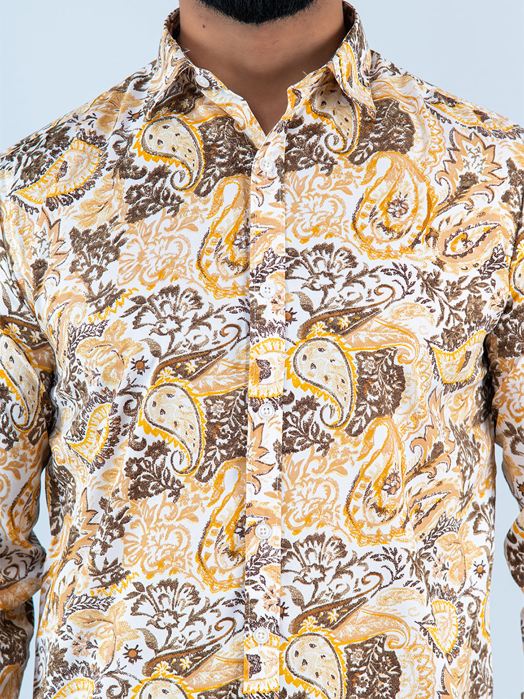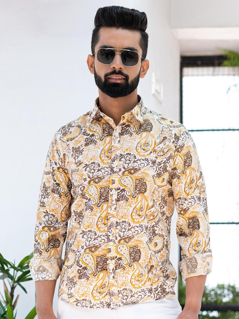 About The Product- This Beautifully Designed Multi Paisley Printed Full Sleeves Crepe Shirt Is A Unique Shirt As It Has Its Own Designer Pattern.