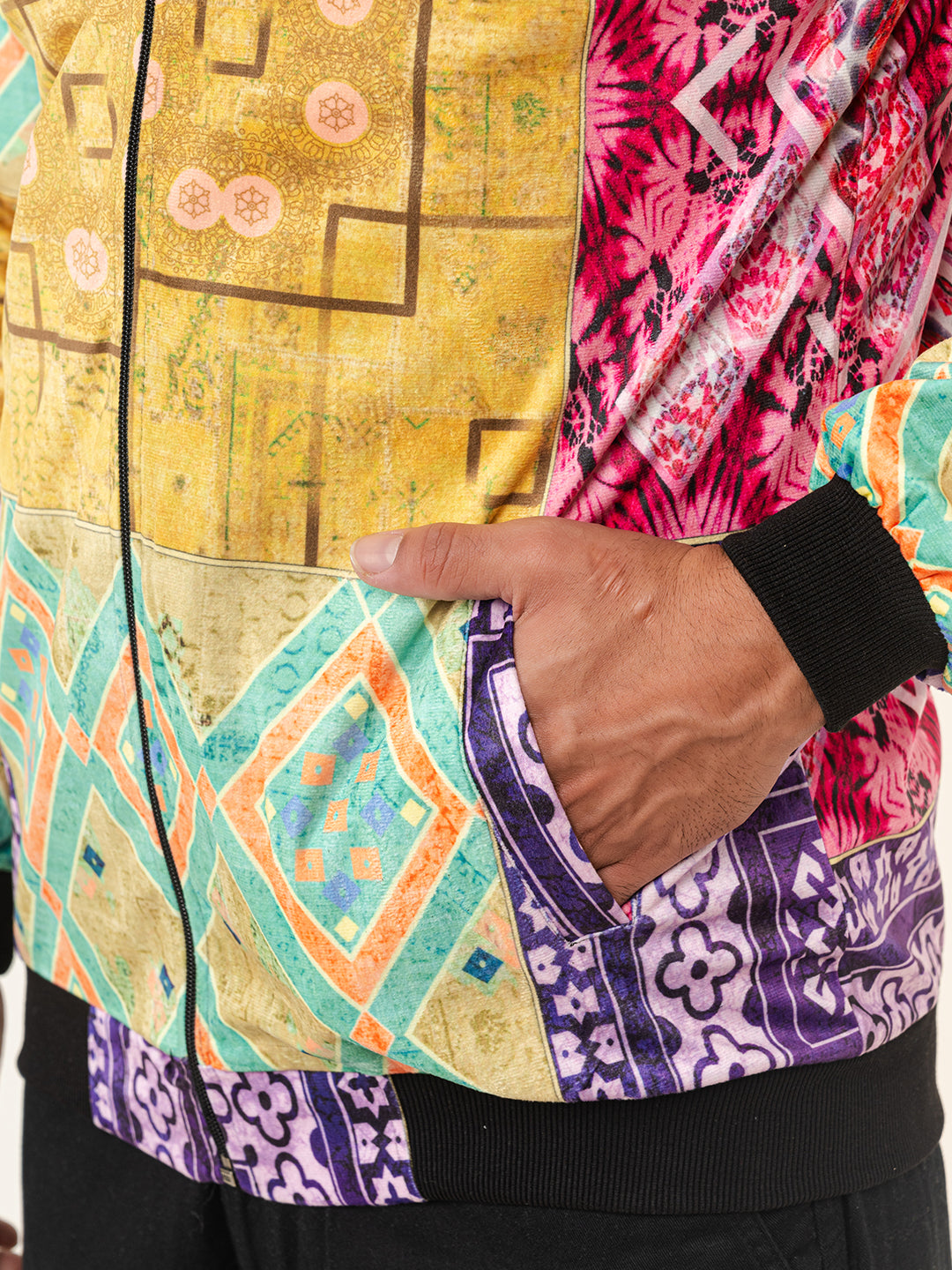 The Multicolor Paisley Printed Velvet Jacket is a cool jacket with amazing traditional prints and a cool design. The jacket is made of high-quality velvet.