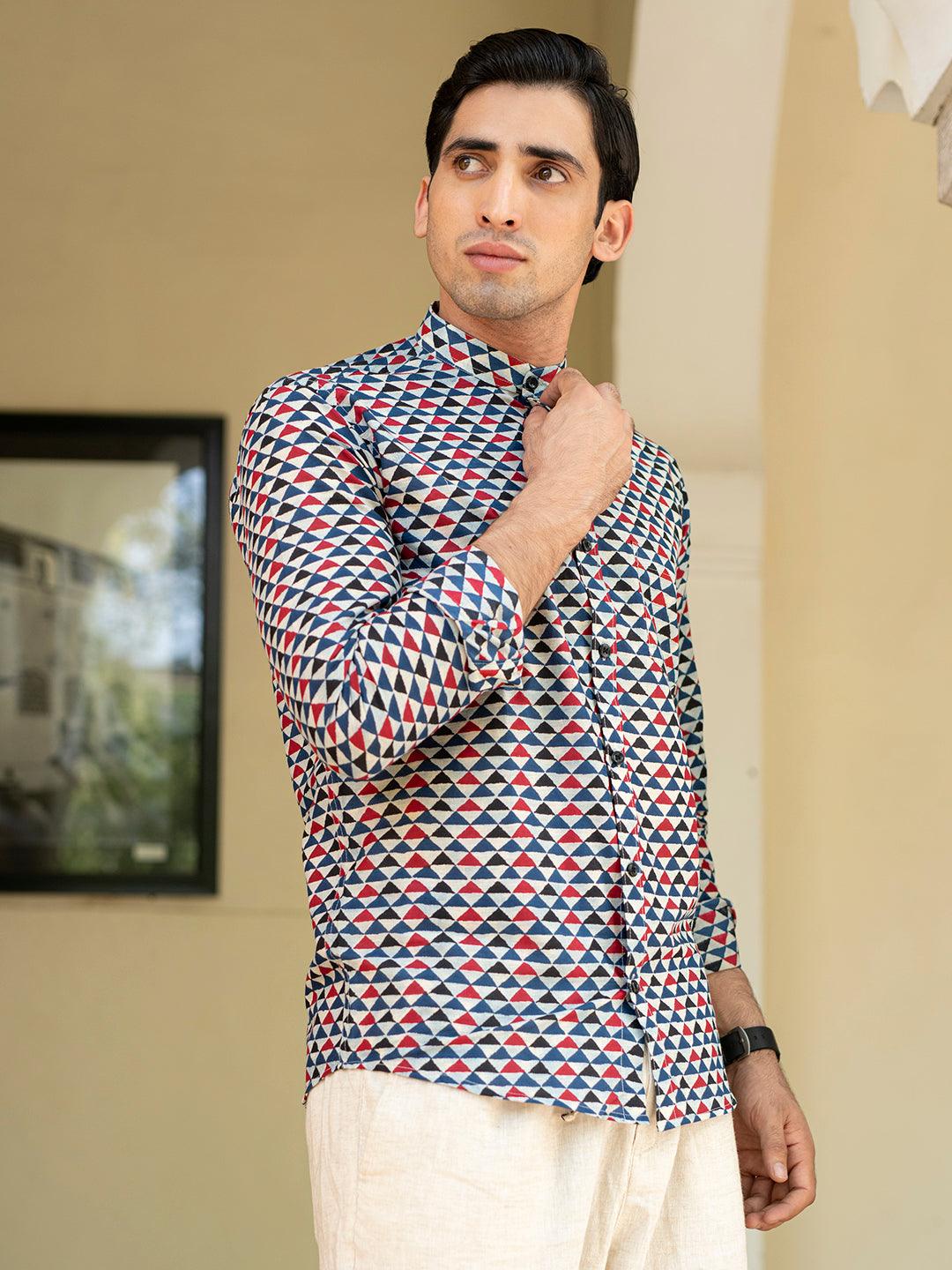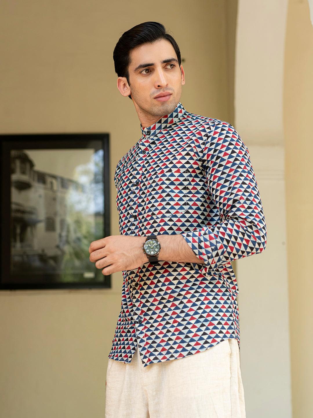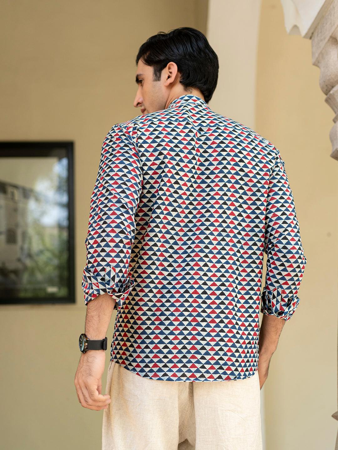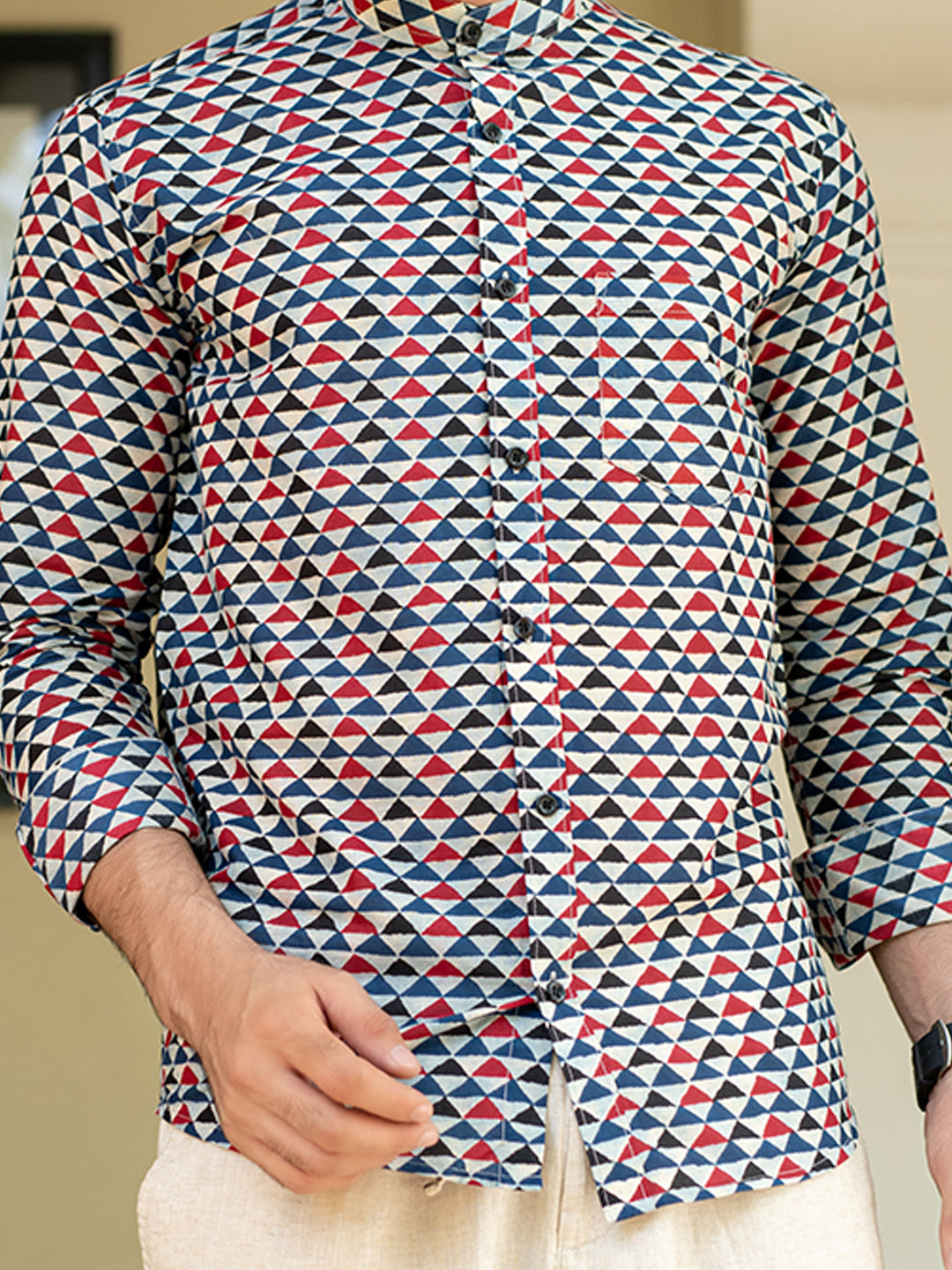 About The Product- Multicolor Triangle Printed Full Sleeves Shirt For Men. A Shirt That Is Stitched With Detailed Precision And Printed With An Authentic Design.