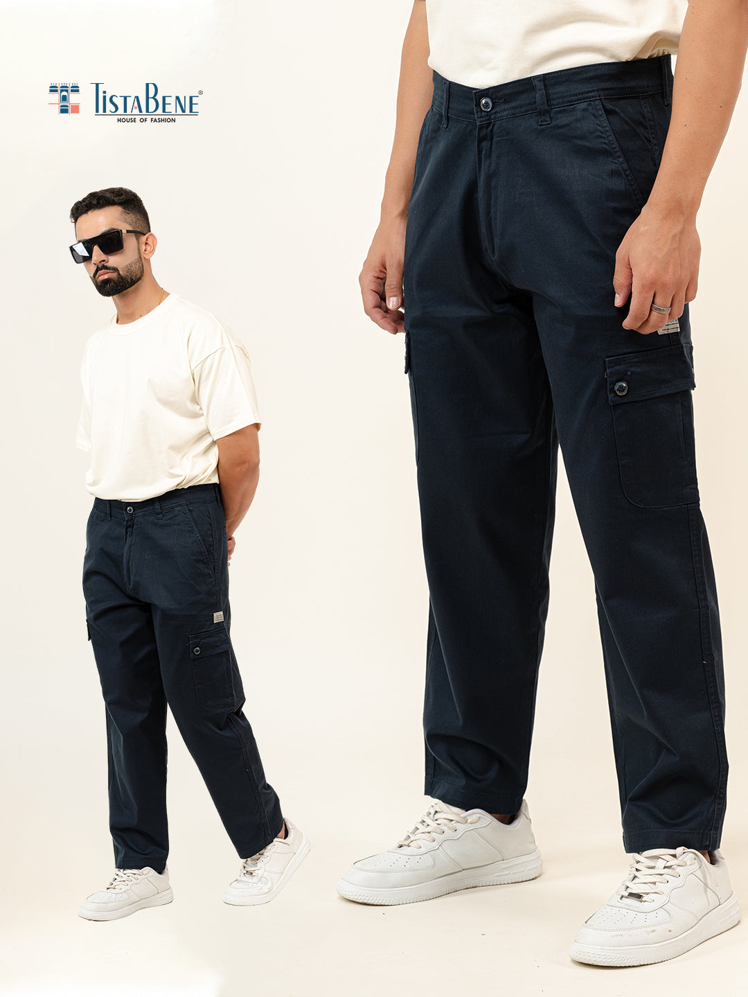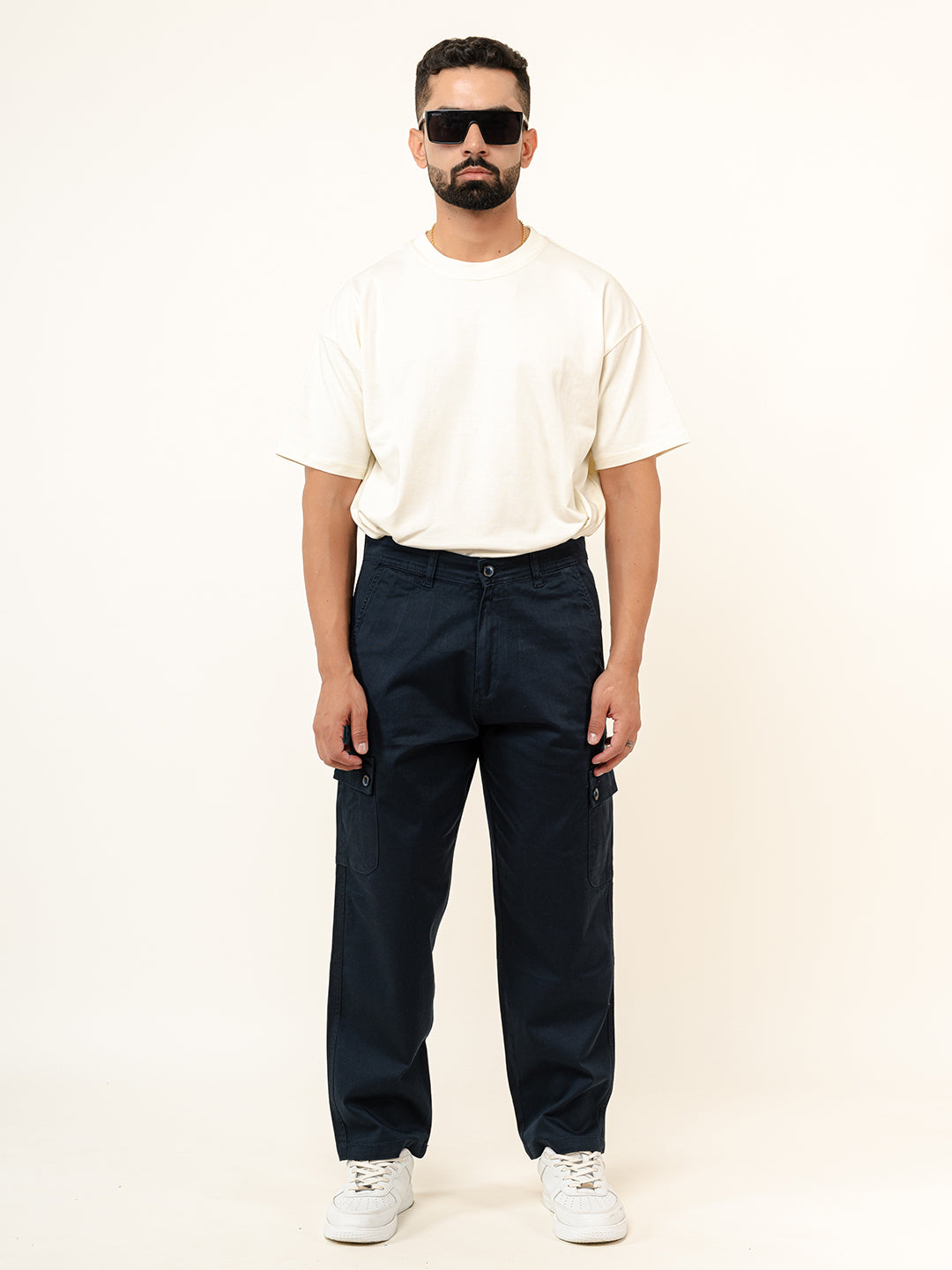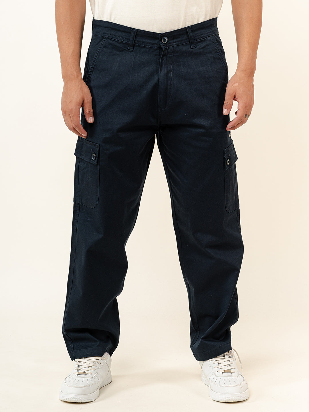 About The Product- These Navy Blue Baggy Fit Chinos Cotton Cargo Pants Are Constructed From cotton; These Pants Are Built To Last While Maintaining Breath-Ability And Comfort.