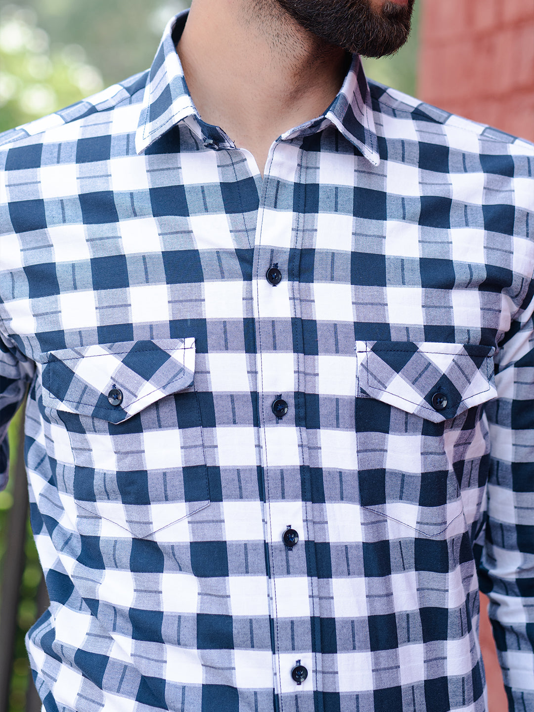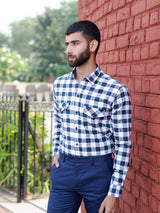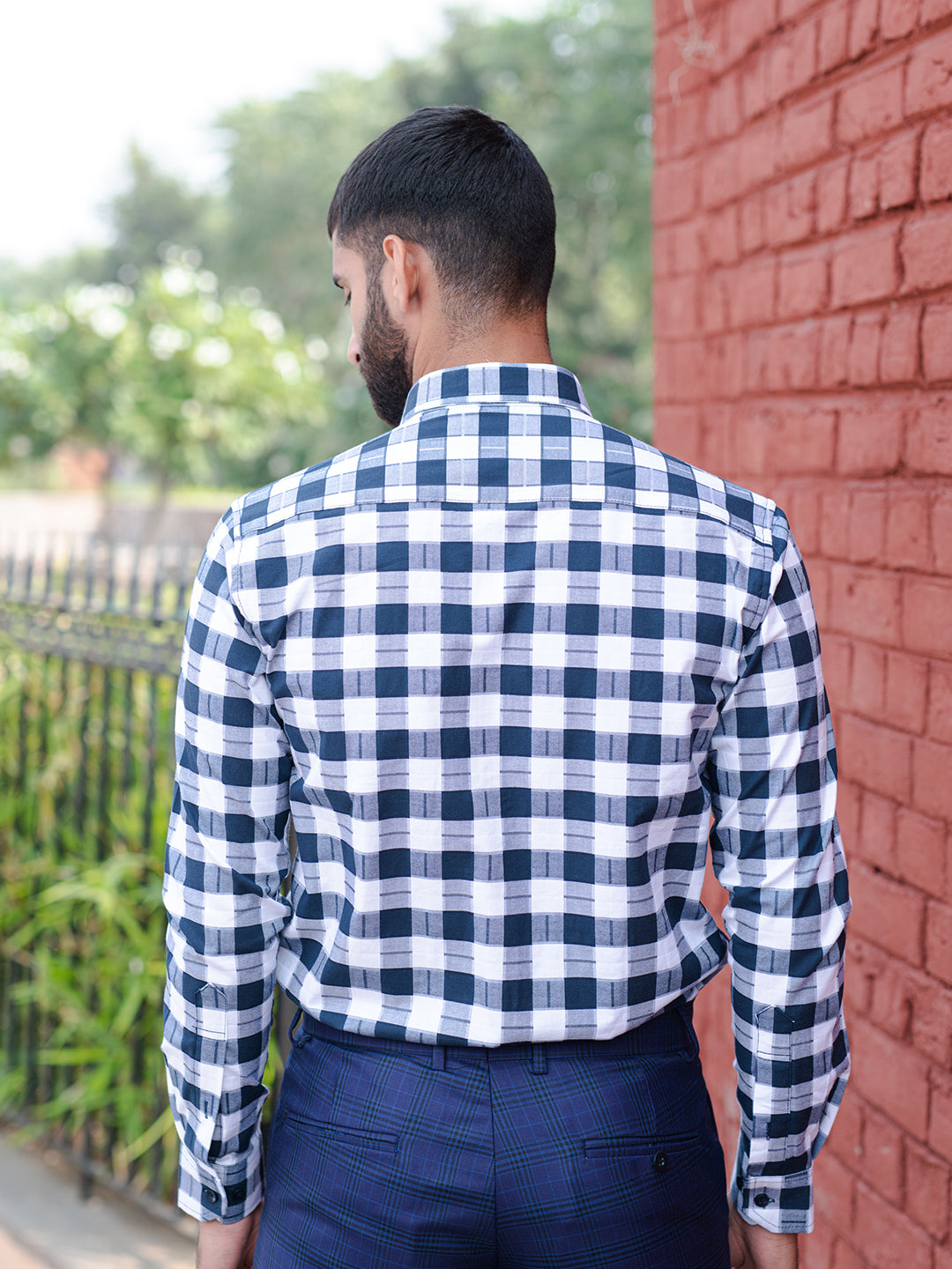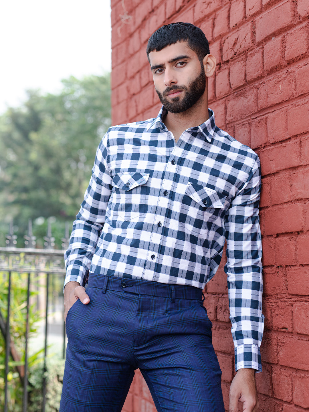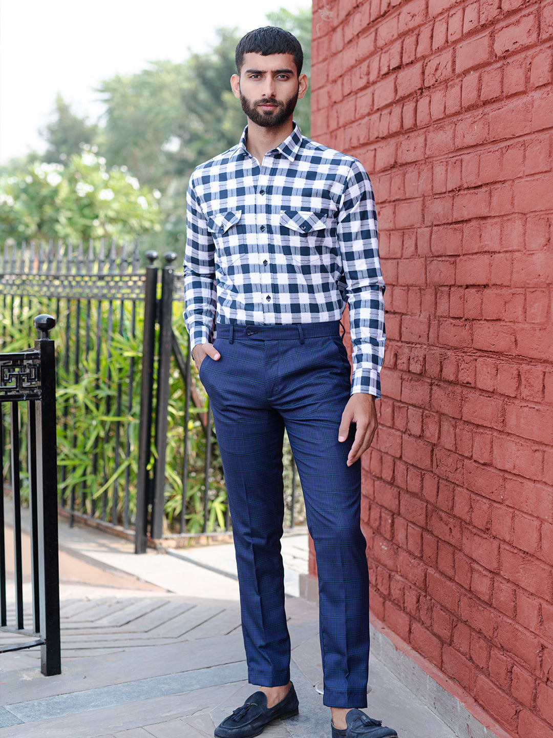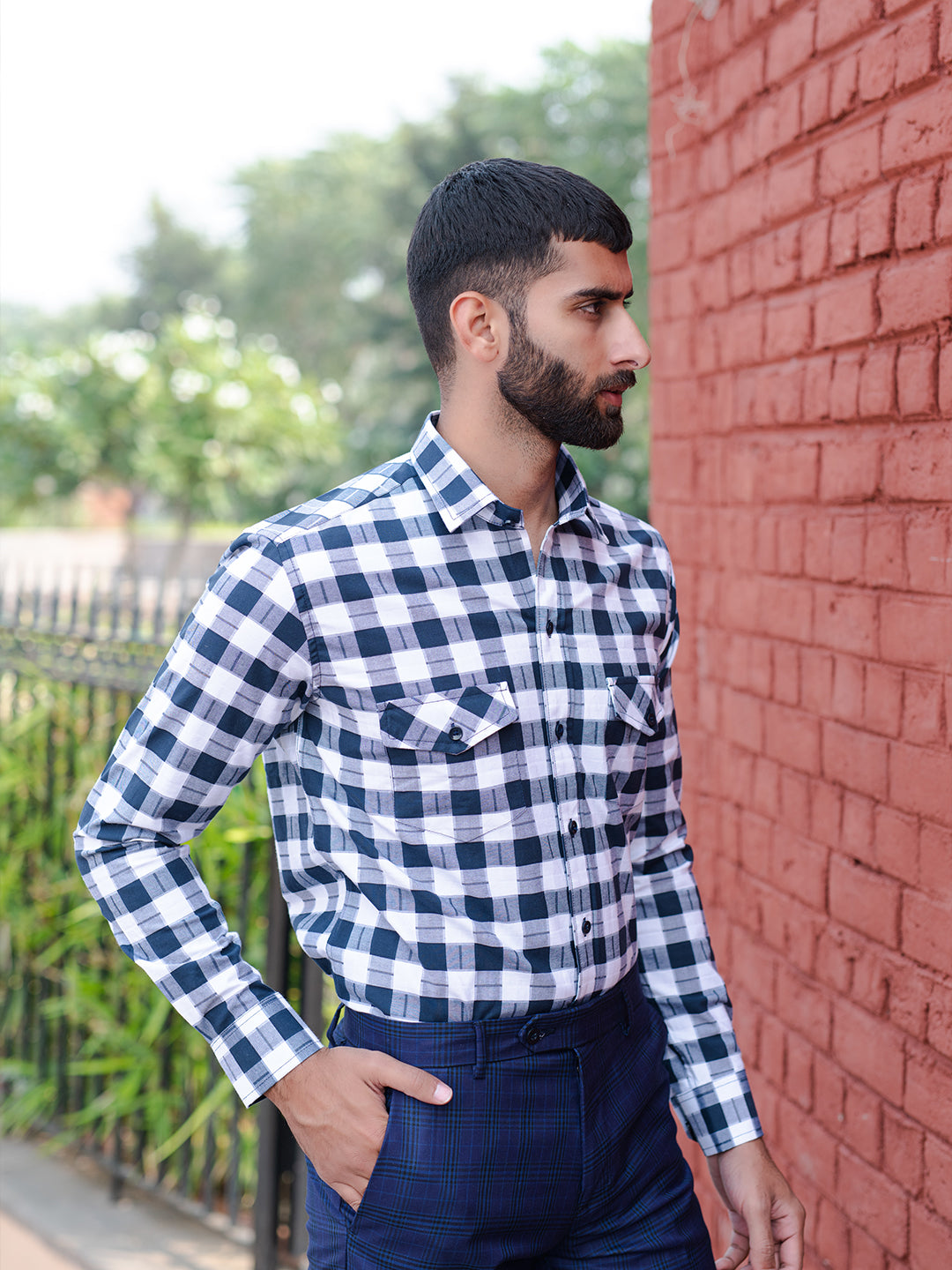 About the Product - Introducing the Navy Blue Check Shirt, a must-have wardrobe staple. This shirt features a classic check pattern in shades of blue, perfect for both casual and formal occasions.
