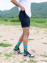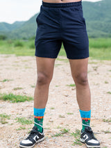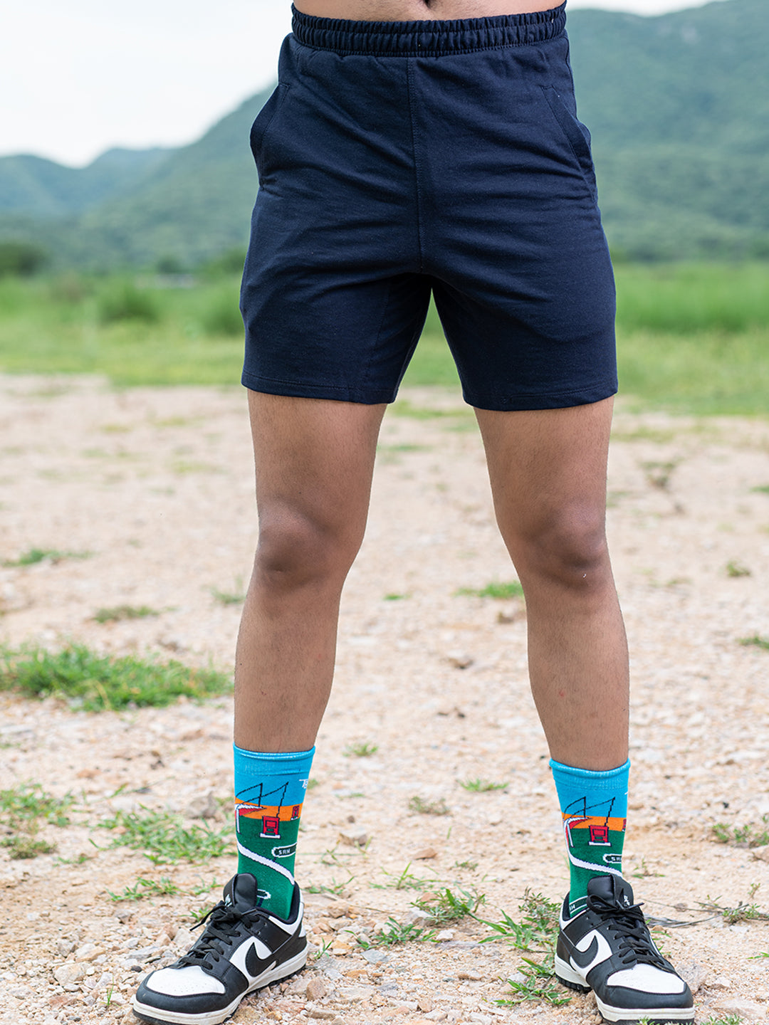 Navy Blue Cut Poket Solid Pattern Cotton Shorts