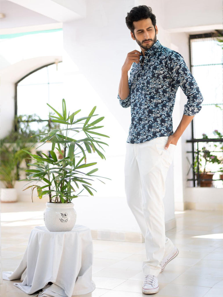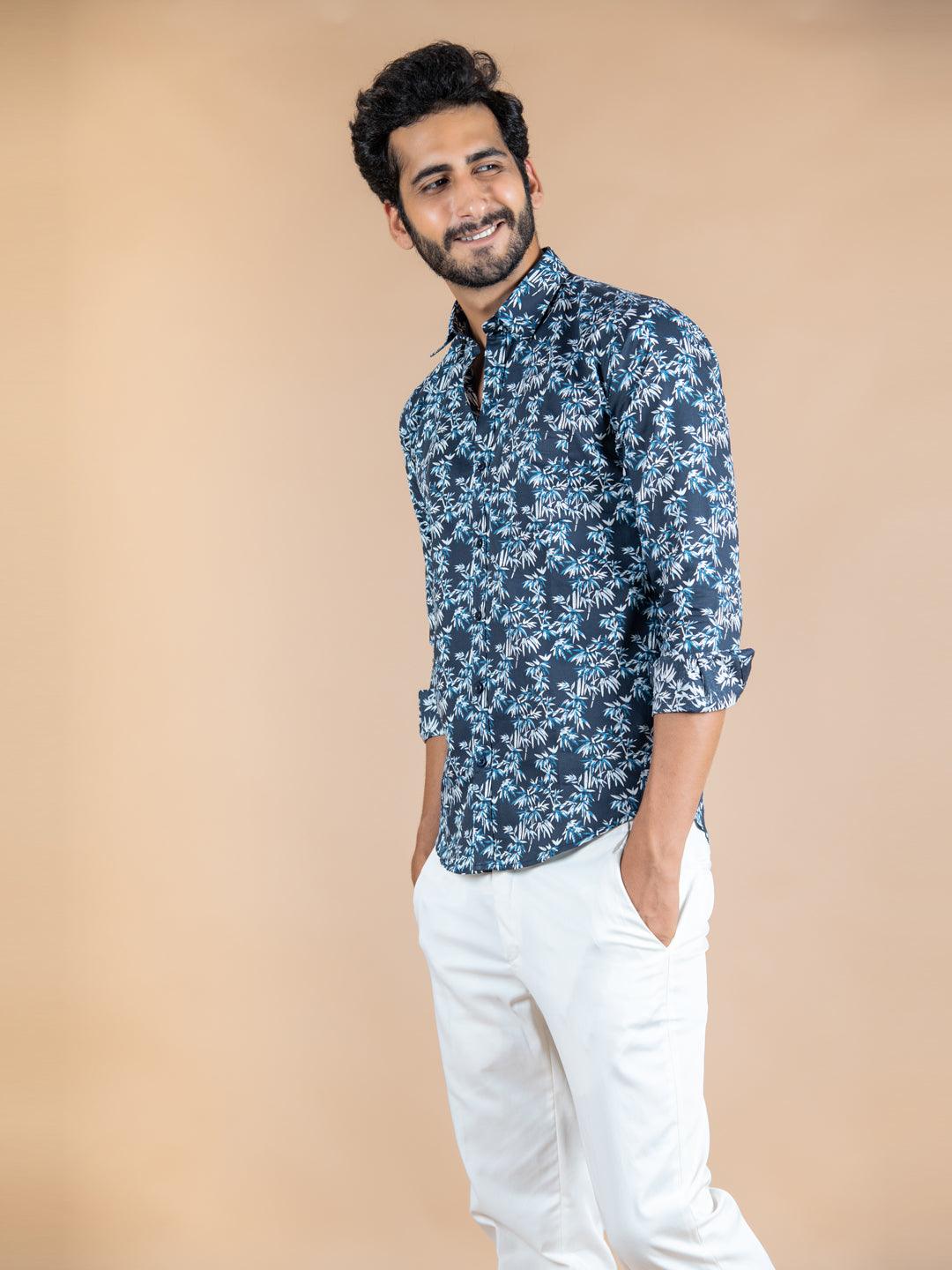 About the product: This Navy Blue Flora Cotton Shirt is made to make you look smart and handsome. This shirt is so comfortable yet so stylish.