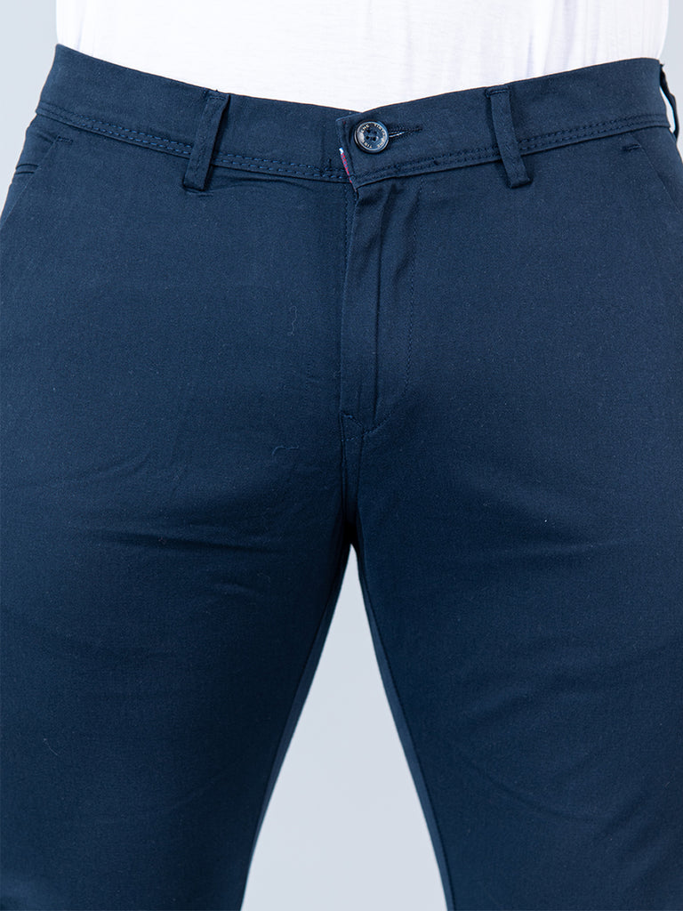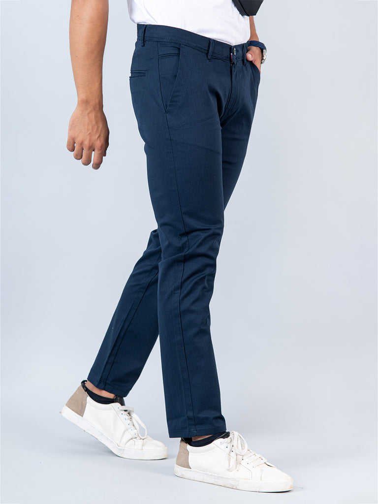 About The Product- This Navy Blue Fusion Fit Cotton Mens Chinos Are Built To Last While Maintaining Breath-Ability And Comfort.