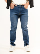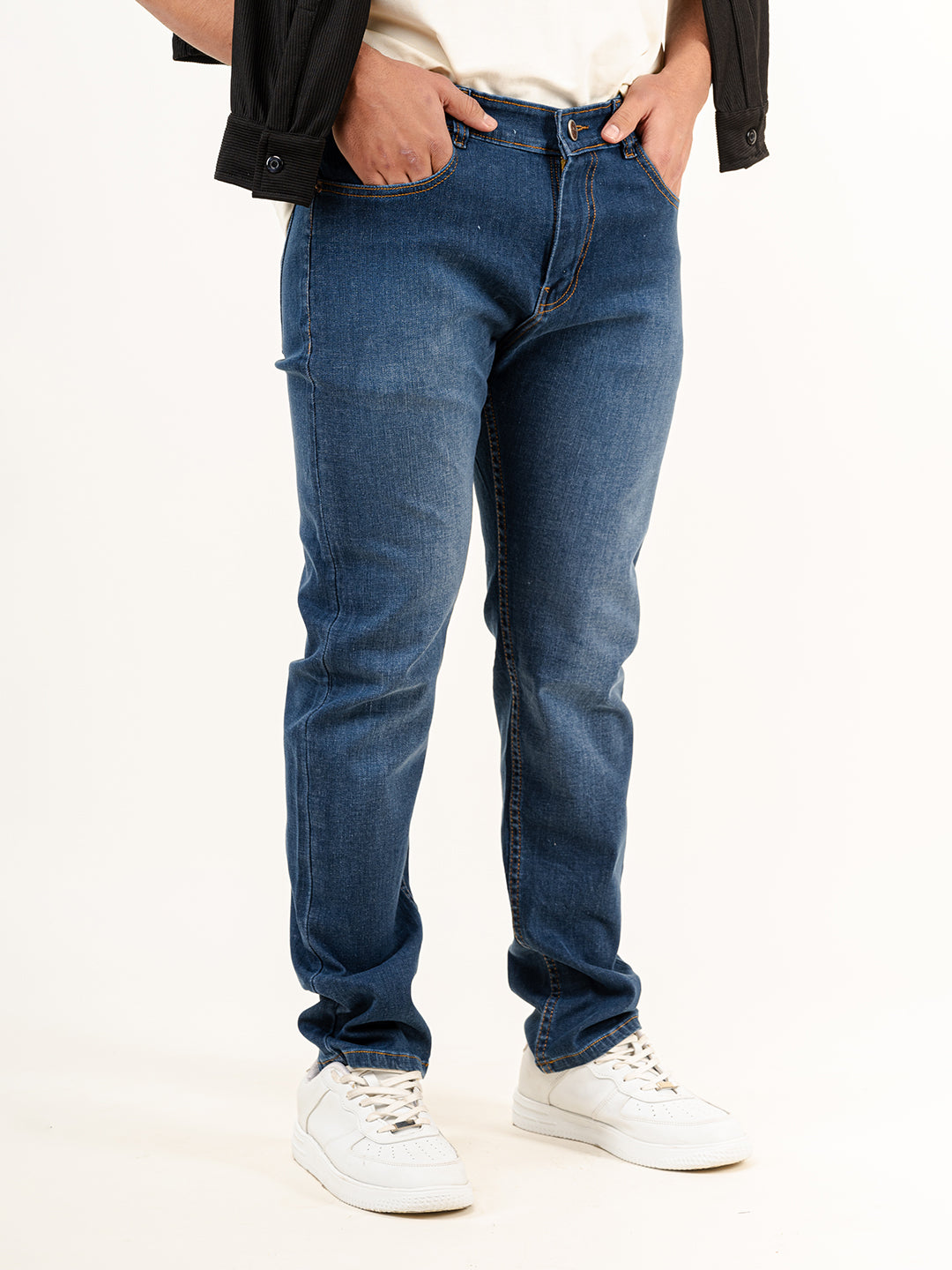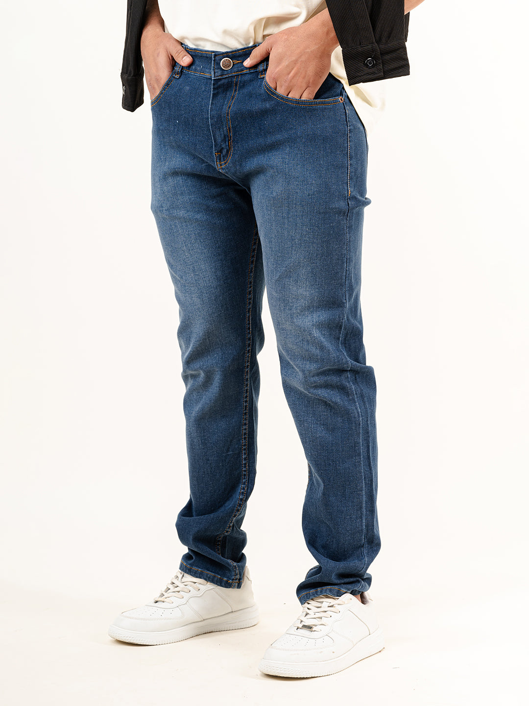 The Navy Blue Plain Slim Fit Denim Jeans offer a clean, classic look with a deep navy wash. With a slim fit design, these jeans provide a modern and tailored silhouette, perfect for a variety of casual or semi-casual occasions.