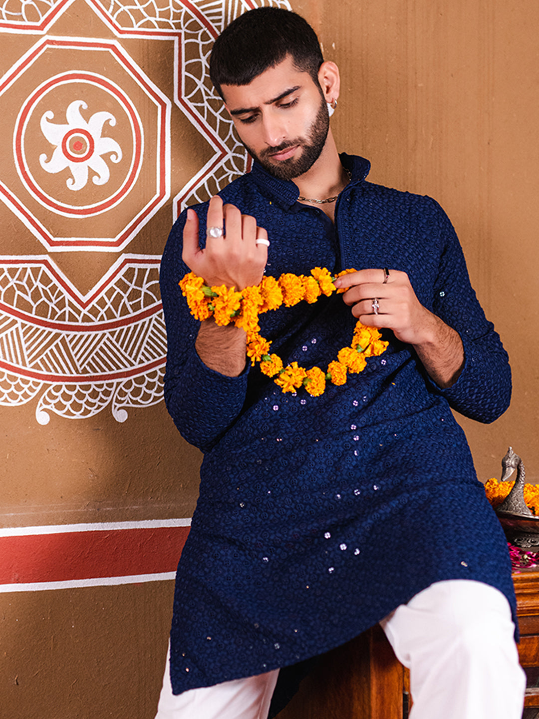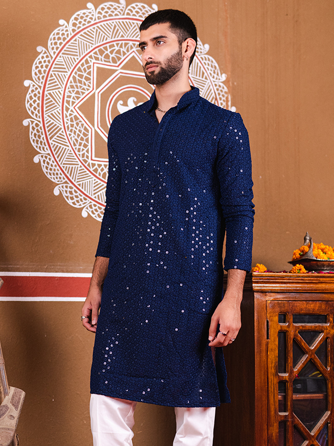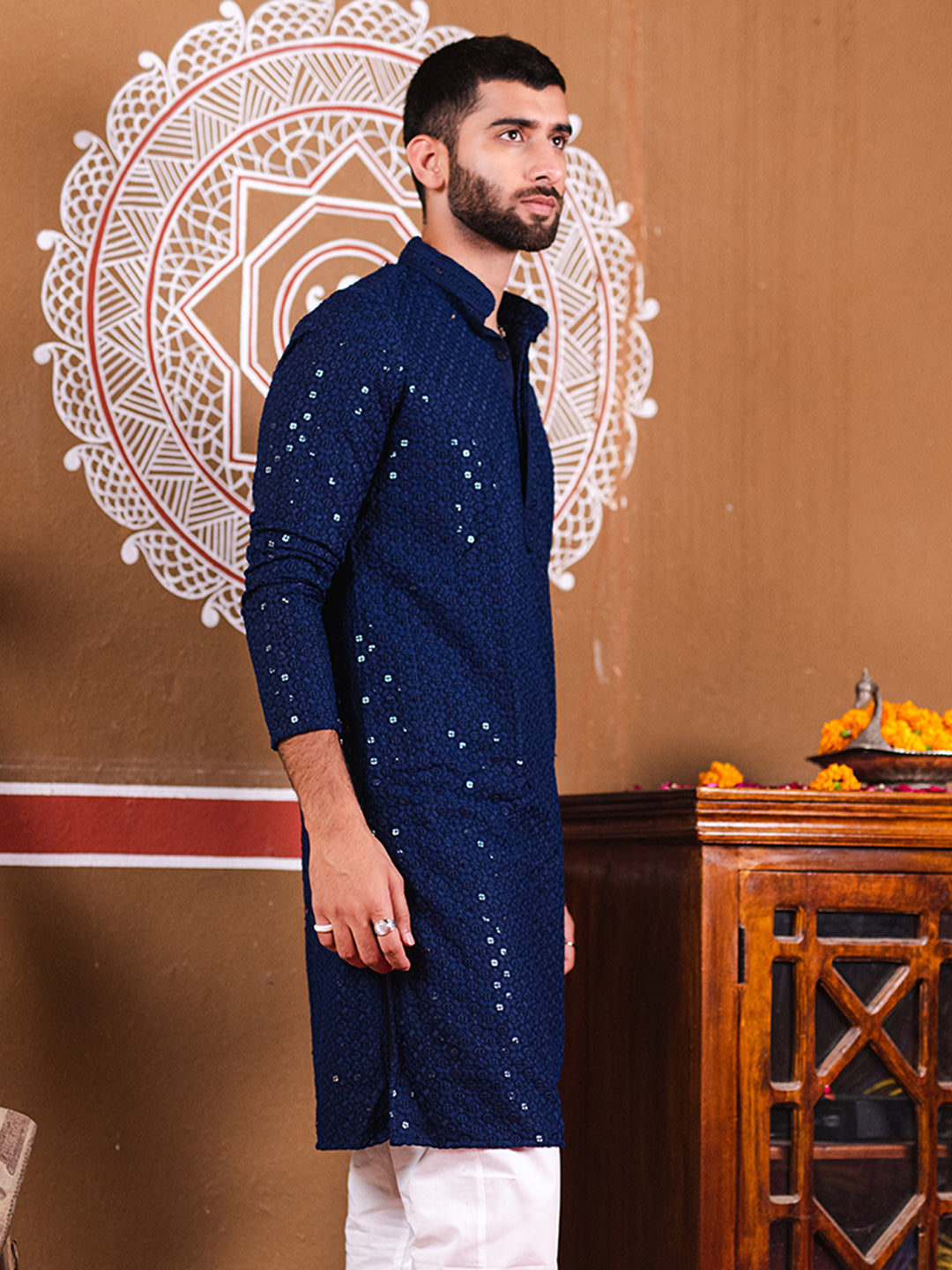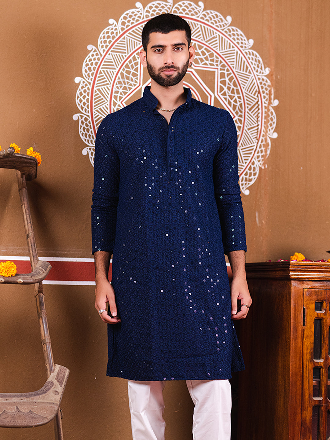 About the product- The Navy Blue Rayon Sequence Men's Kurta is made of high quality cotton fabric and has beautiful embroidery design!