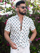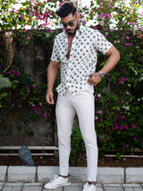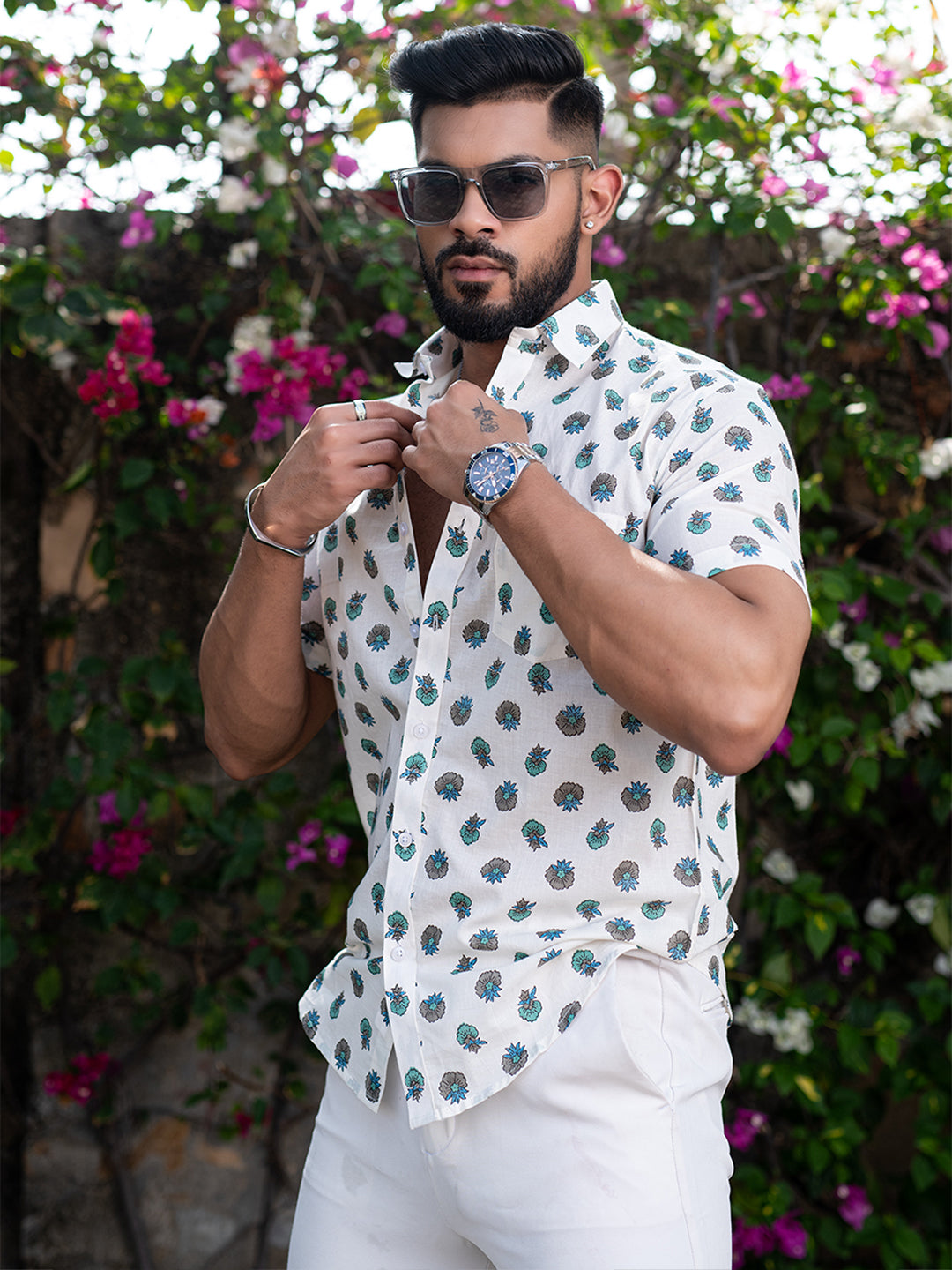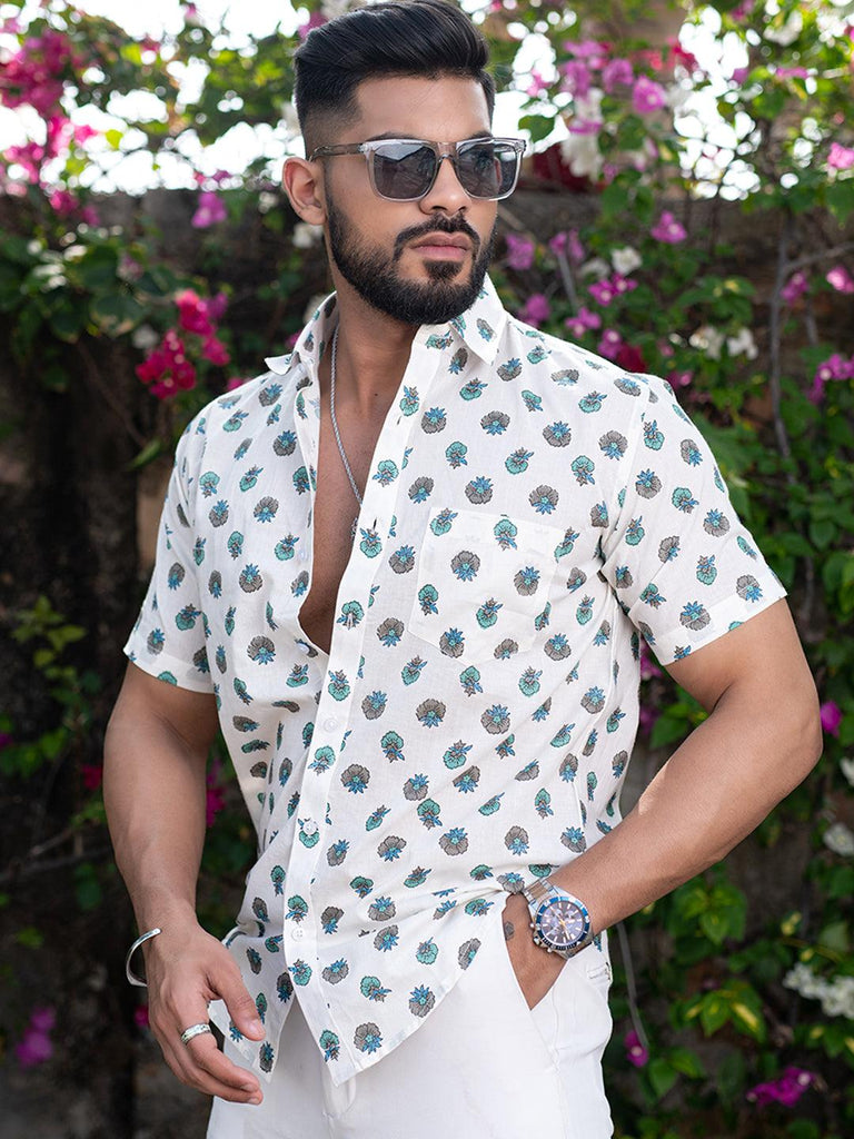 About the product: This off white floral block printed half sleeves cotton shirt is made to make you look smart. This comfortable shirt is a must inside your wardrobe.