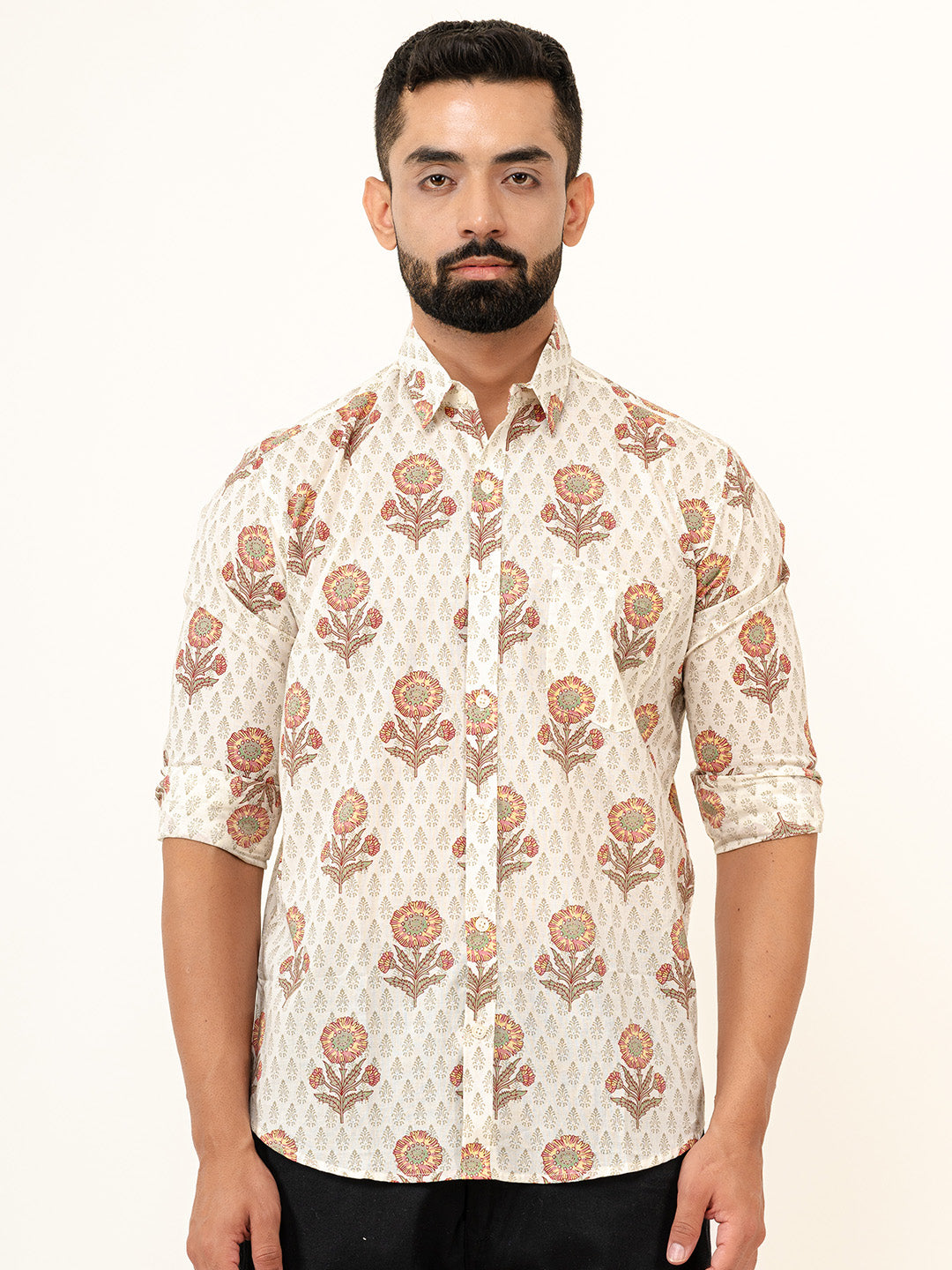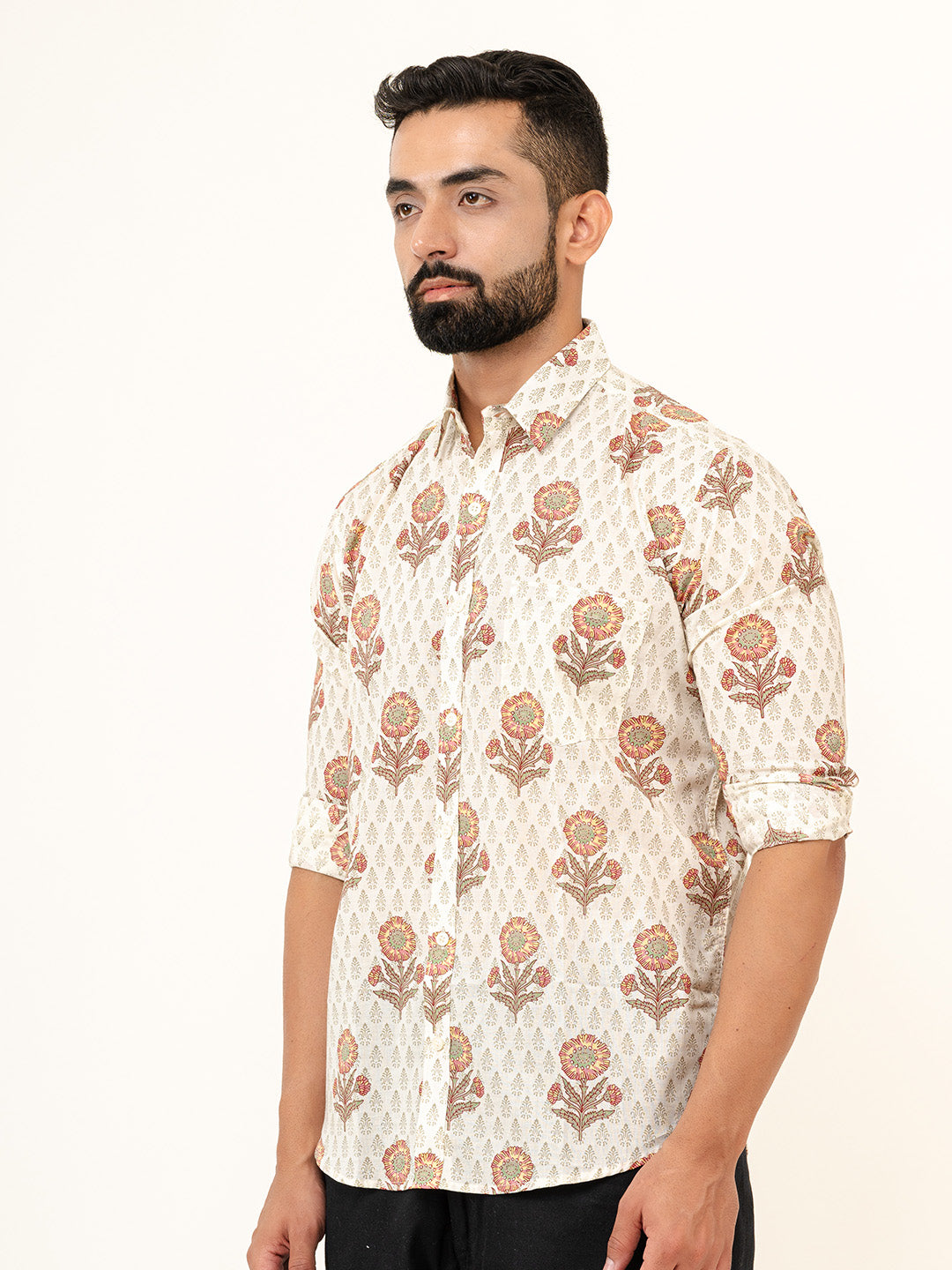 Style note - Off white printed shirt is the rich choice because this color is a standard color. The best thing is that it gives a handsome look everytime. If you are unable to decided what you should wear, wear this shirt witout thinking further, with dark blue denim jeans and wear blue sneakers to complete your rich look