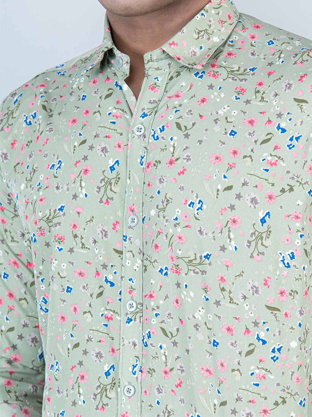 About the product- This Olive Green Floral Printed Full Sleeves Crepe Shirt is made to make you look smart, this comfortable shirt is your wardrobe essential which gives a stunning look while wearing.
