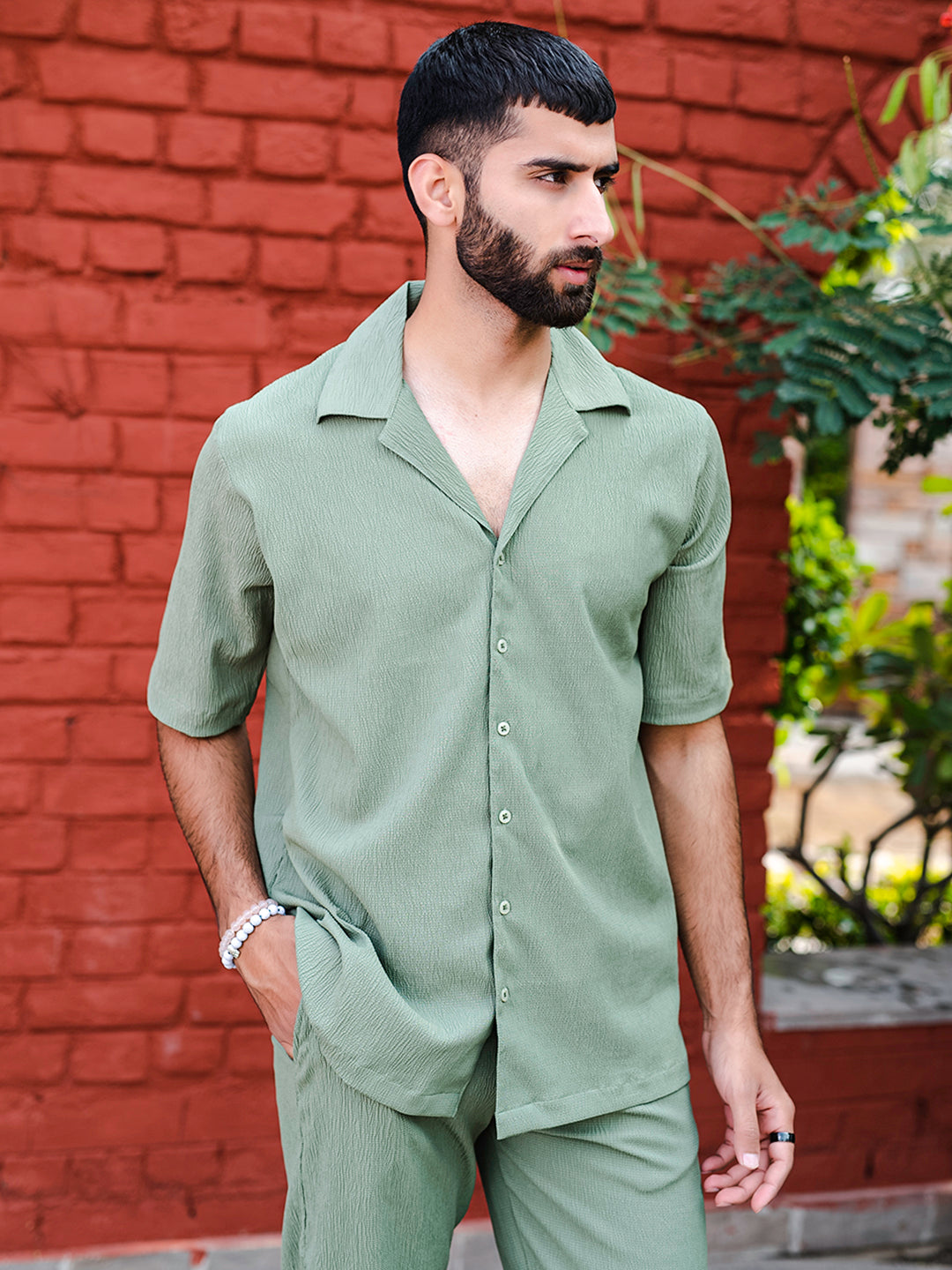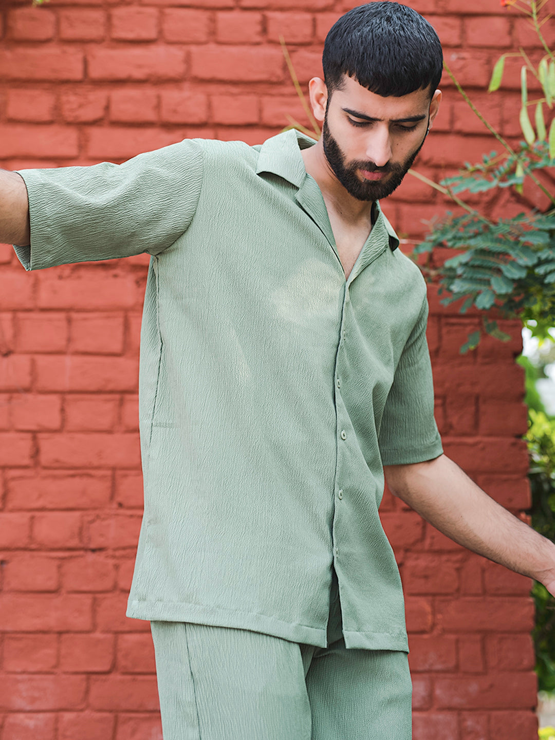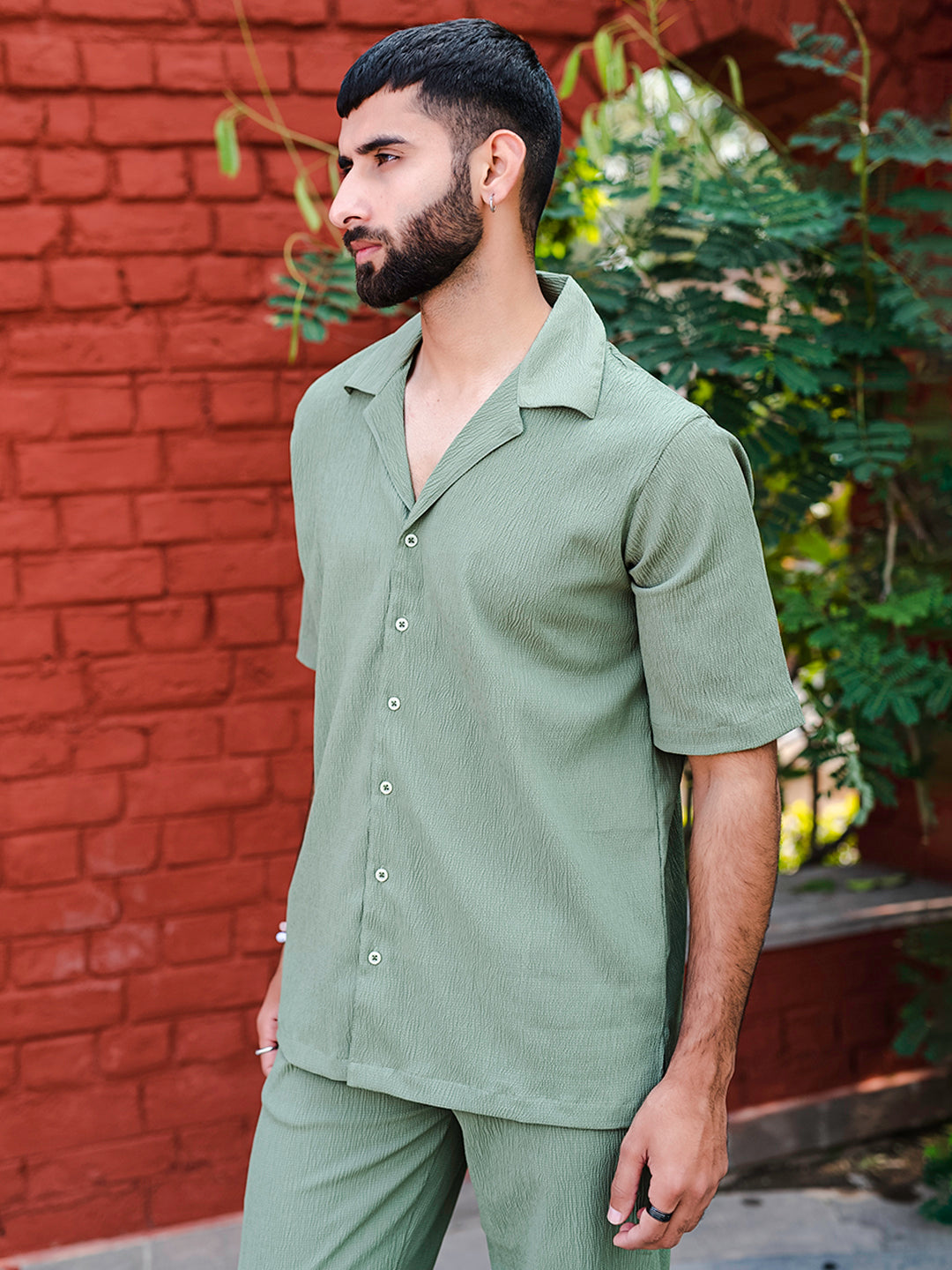 Olive Green Oversized Popcorn Texture Half Sleeves Shirt is made of Popcorn fabric which is comfortable and gives a cool look.