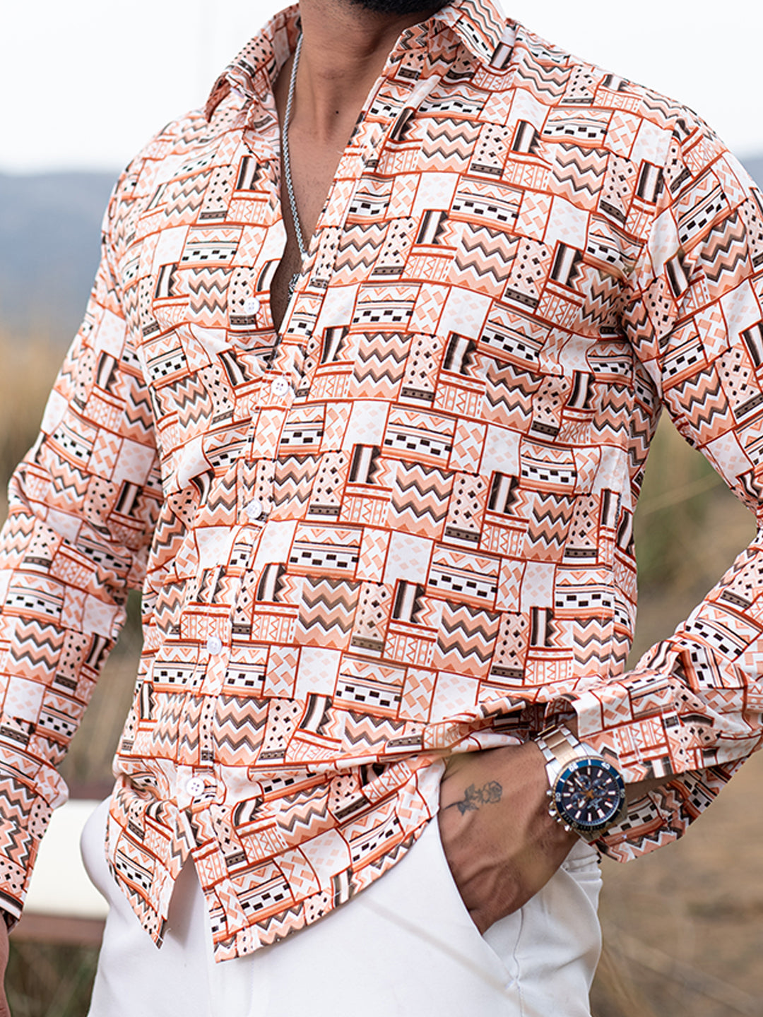 About the product: This orange abstract printed full sleeves crepe shirt is made to make you look smart. This comfortable shirt is a must inside your wardrobe.
