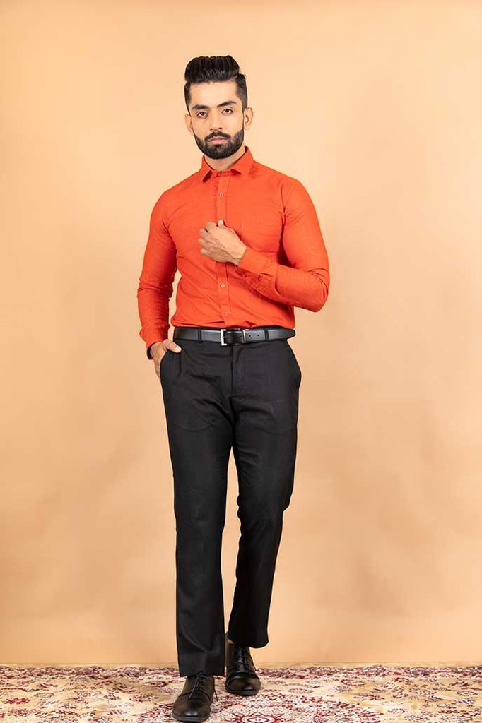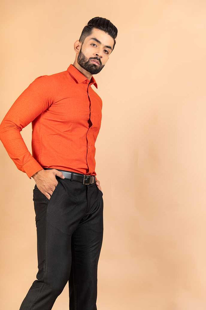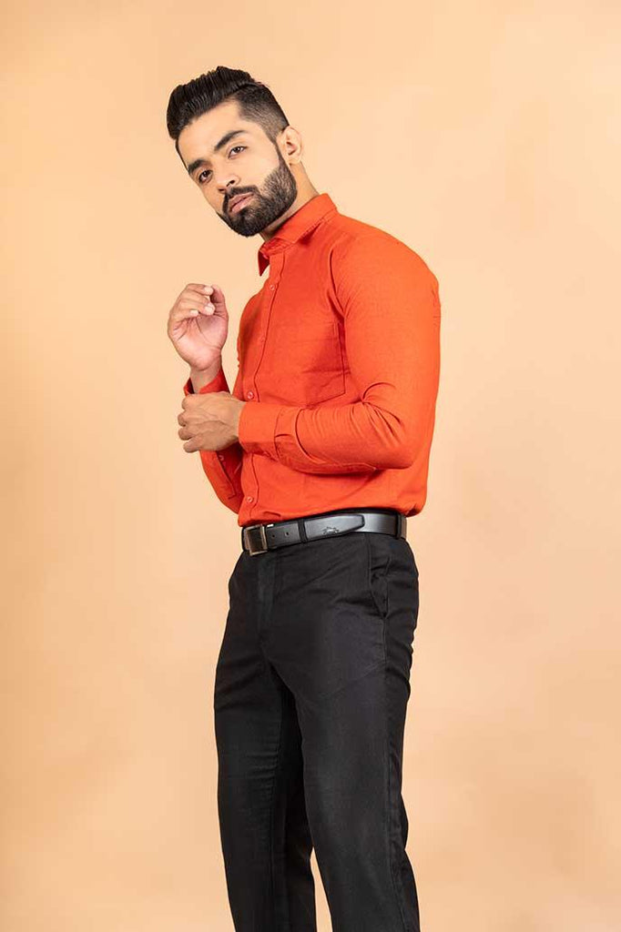 About the product- This Orange Solid Cotton Shirt is all set to take your style to the next level and make you look stunning.