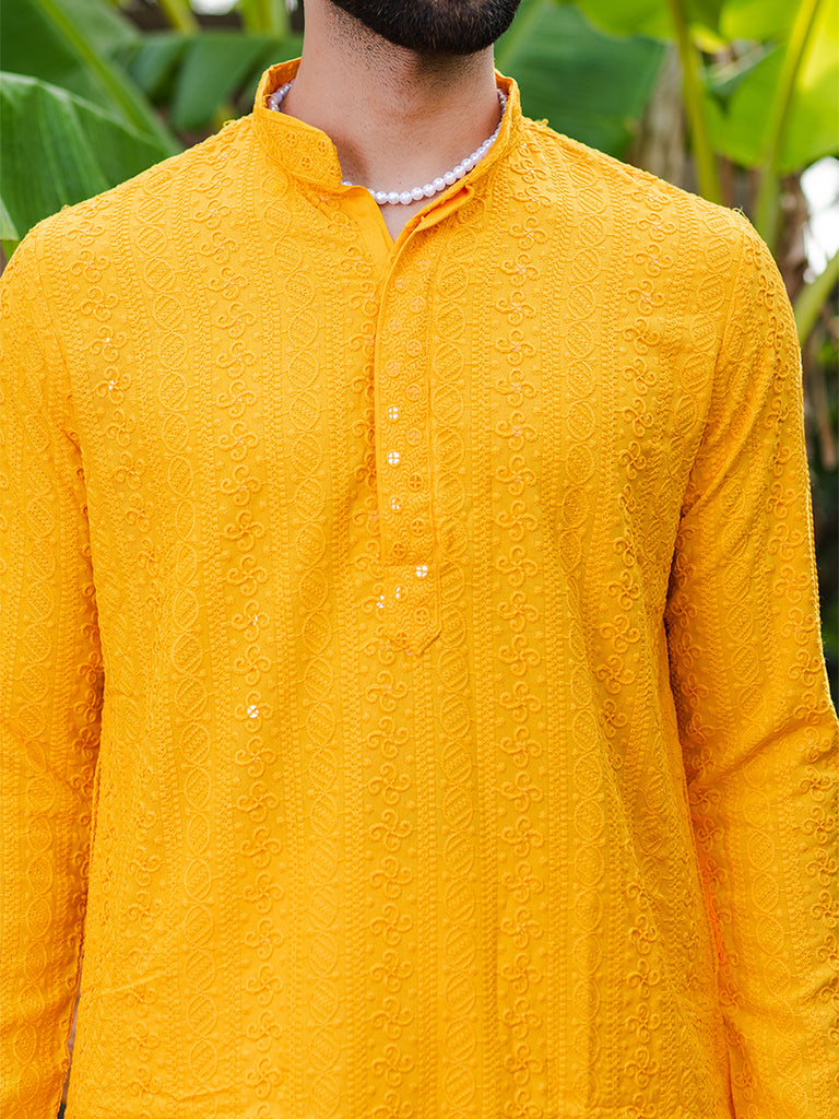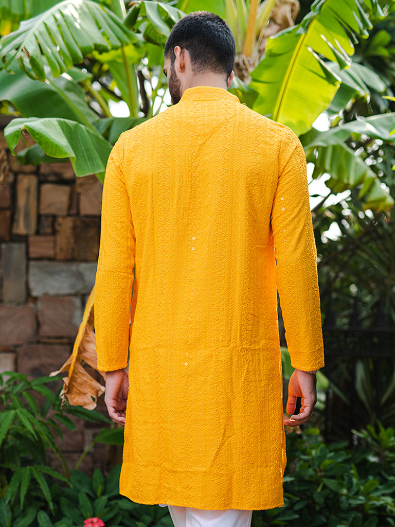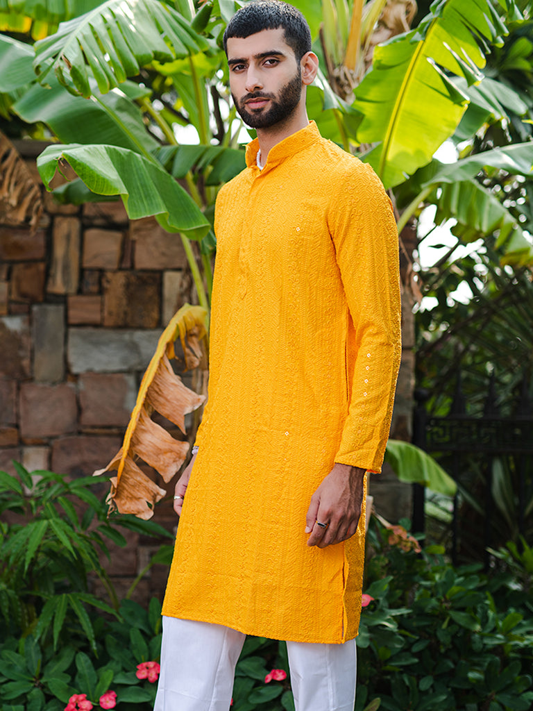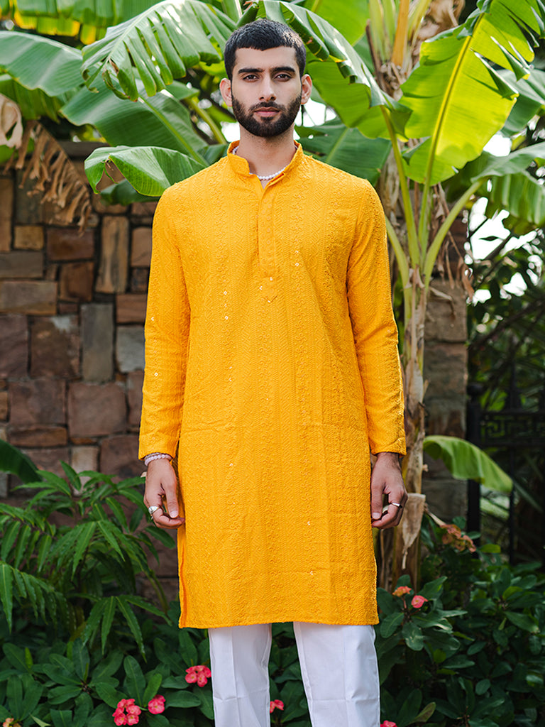 About the product- The bright orange yellow kurta is perfect for the wedding season to keep you comfortable and matched with the vibe.