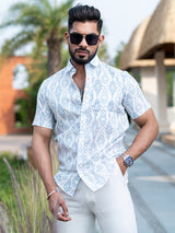 About the product: This Pale Blue Block Printed Half Sleeves Cotton Shirt is made to make you look smart. This comfortable shirt is definitely a must in your wardrobe.