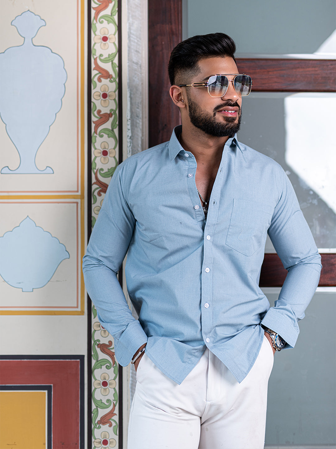 About the product: This pale blue full sleeves giza cotton shirt is made to make you look smart. This comfortable shirt is a must inside your wardrobe.