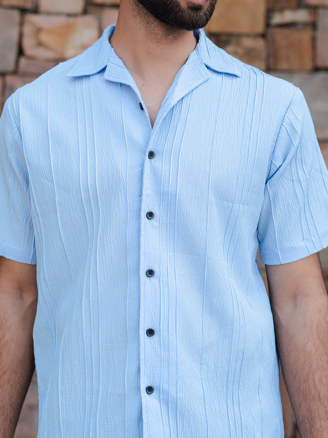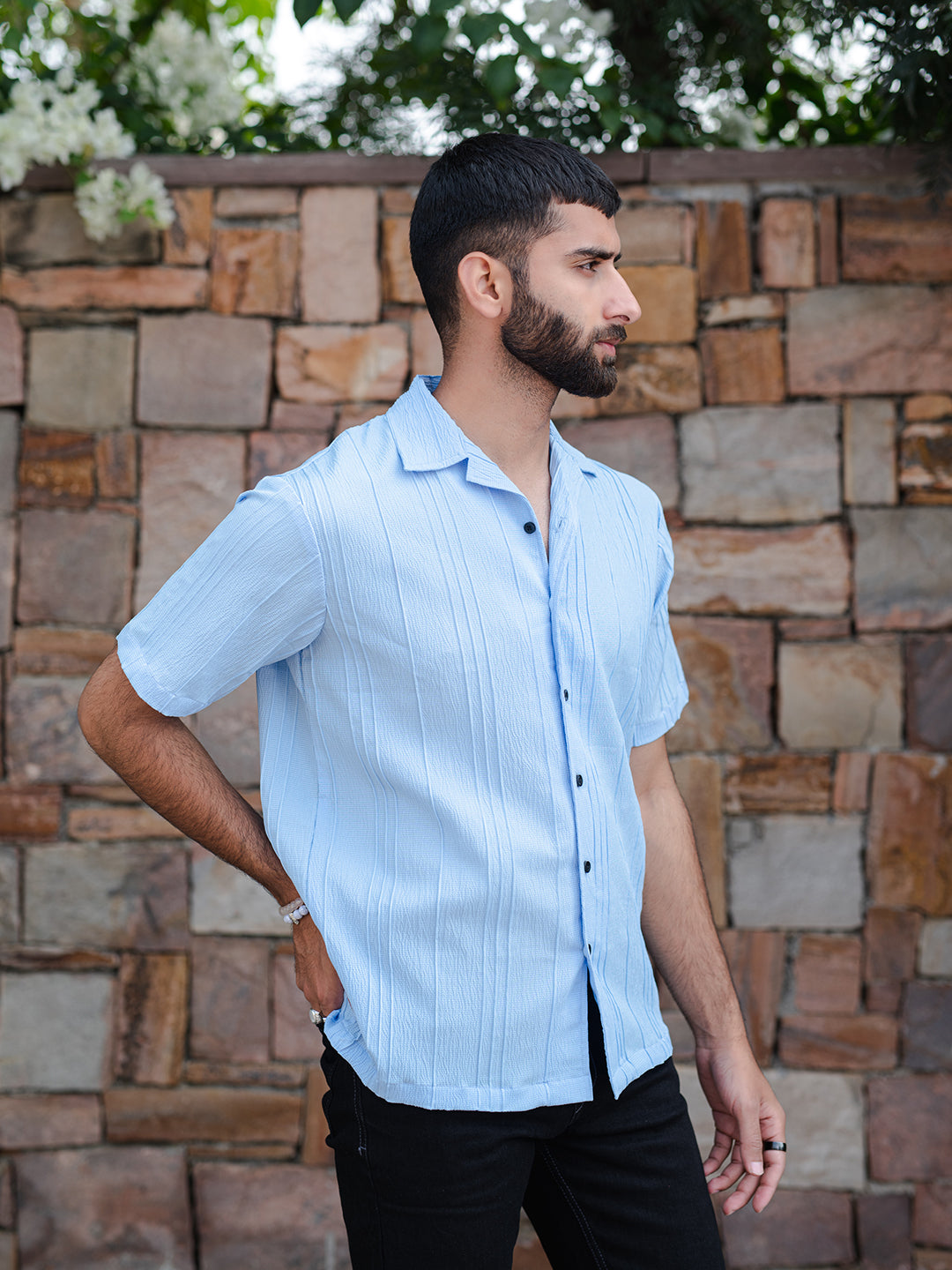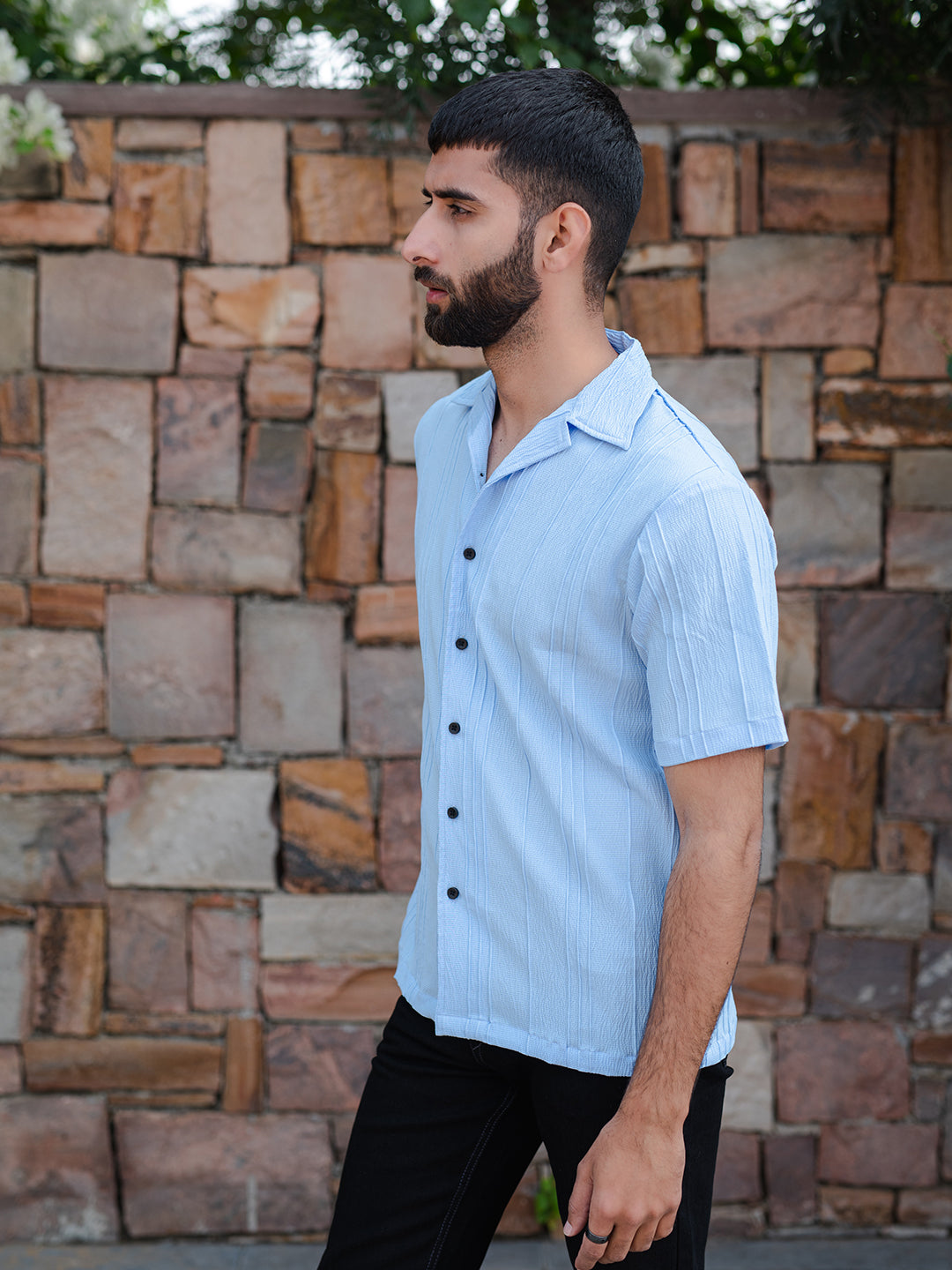 Pale Blue Oversized Striped Popcorn Texture half Sleeves Shirt has a very beautiful and subtle Pale blue color and is very comfortable.