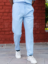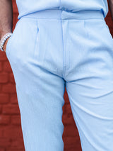 Add a refreshing touch to your wardrobe with these Pale Blue Popcorn Textured Straight Fit Pants. Made from soft, textured fabric, these pants combine comfort with a stylish design.