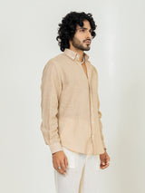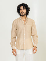 This pine color shirt is a blend of linen, cotton, and polyester, perfect for both casual and semi-formal wear. Its lightweight fabric ensures comfort, while the full sleeves provide a polished look.