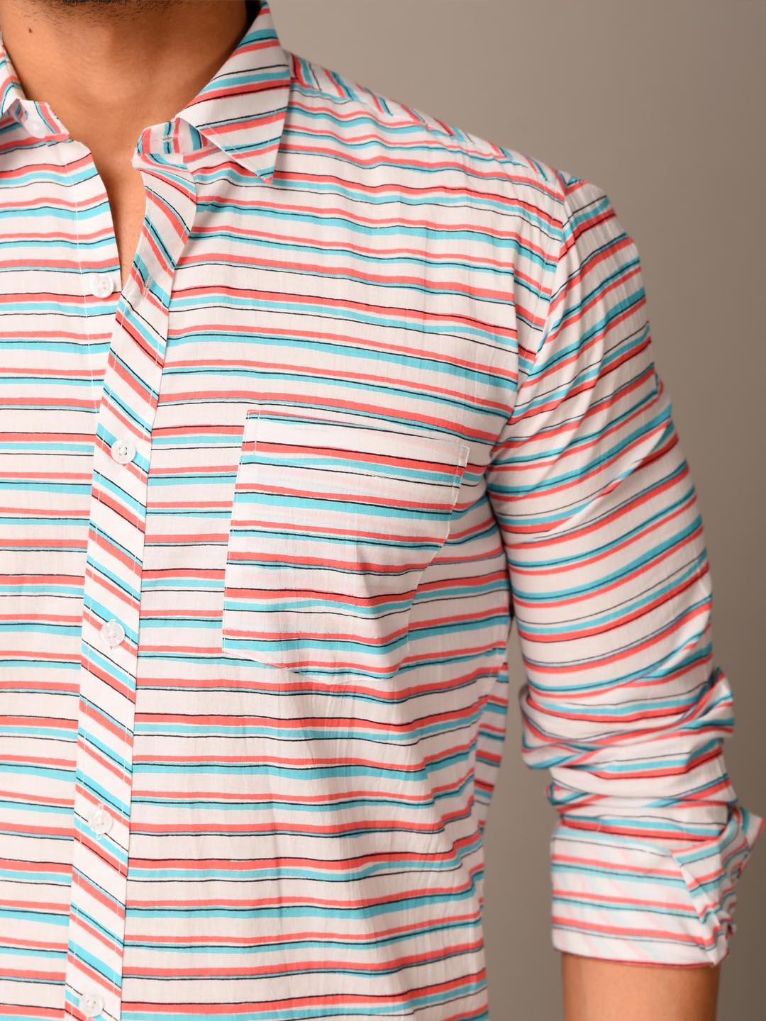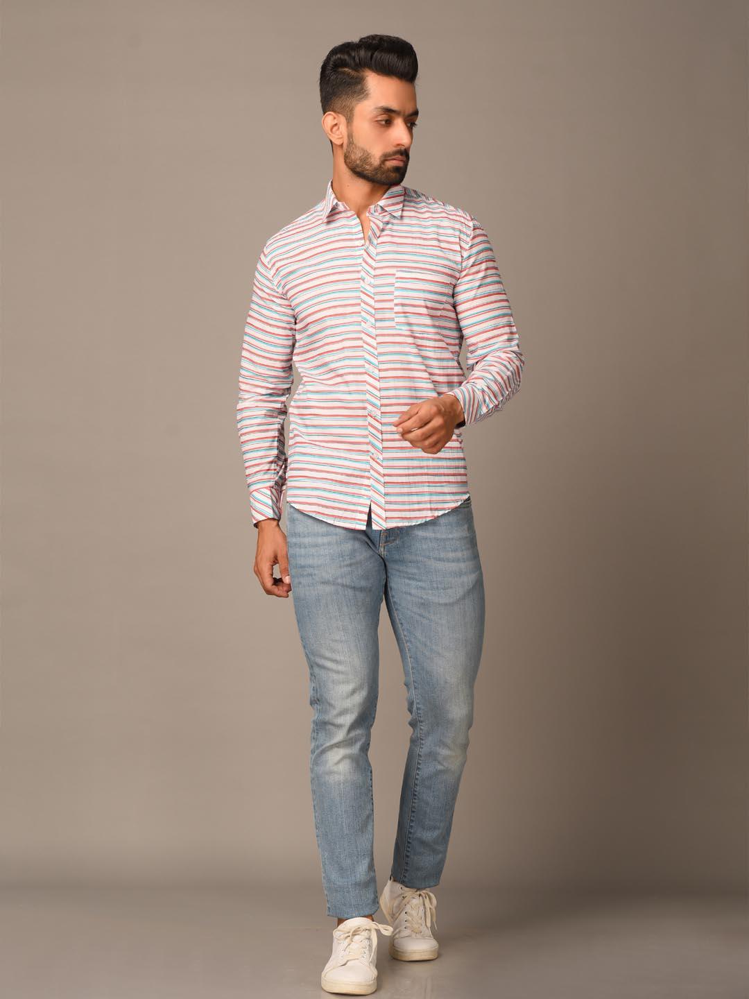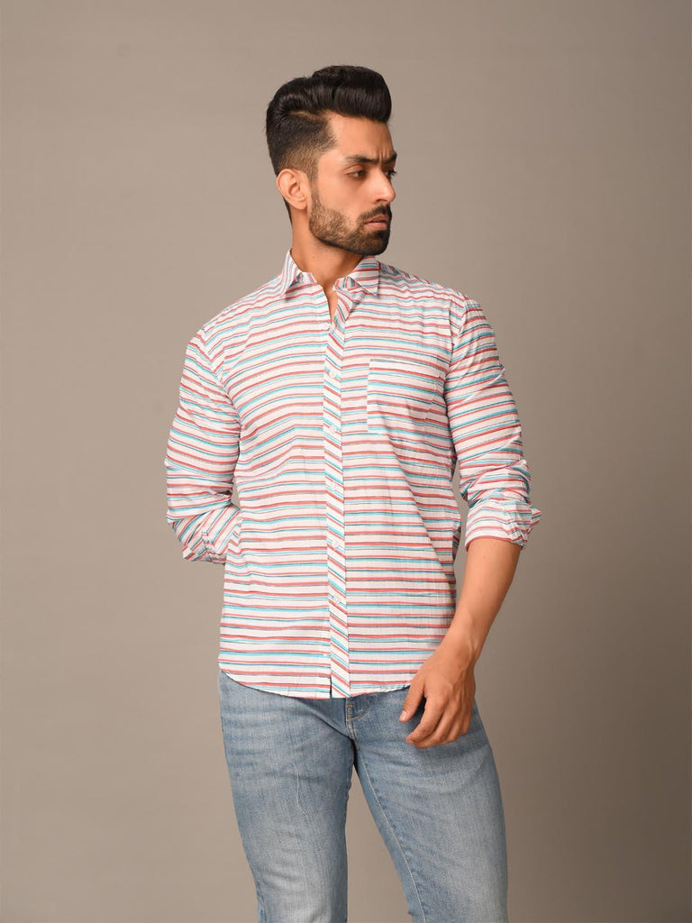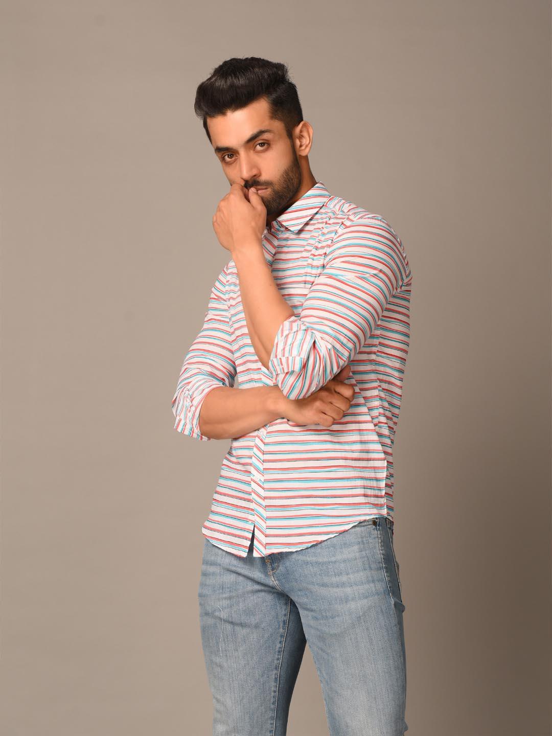 About the product: This Pink and Blue Stripes Cotton Shirt is made to make you look smart and handsome. This shirt is so comfortable yet so stylish.