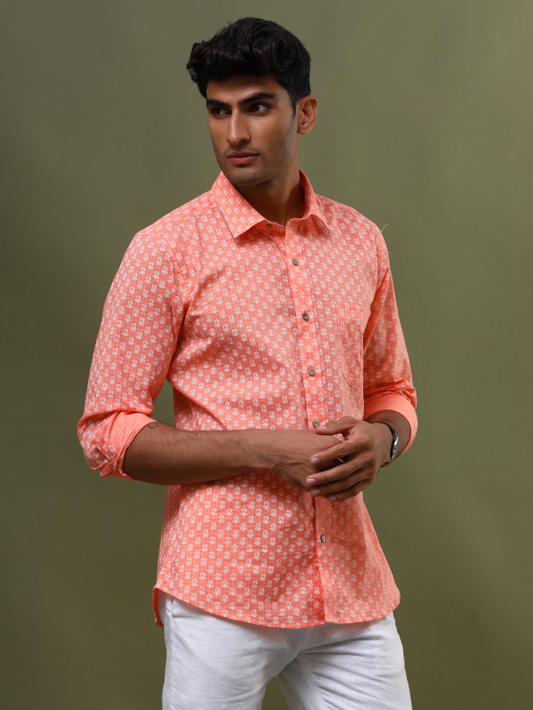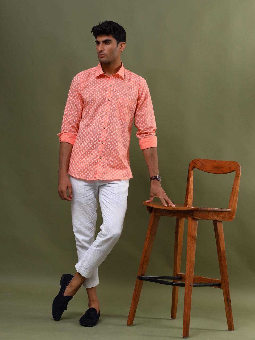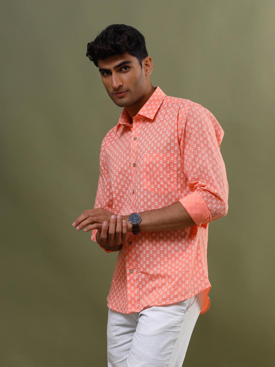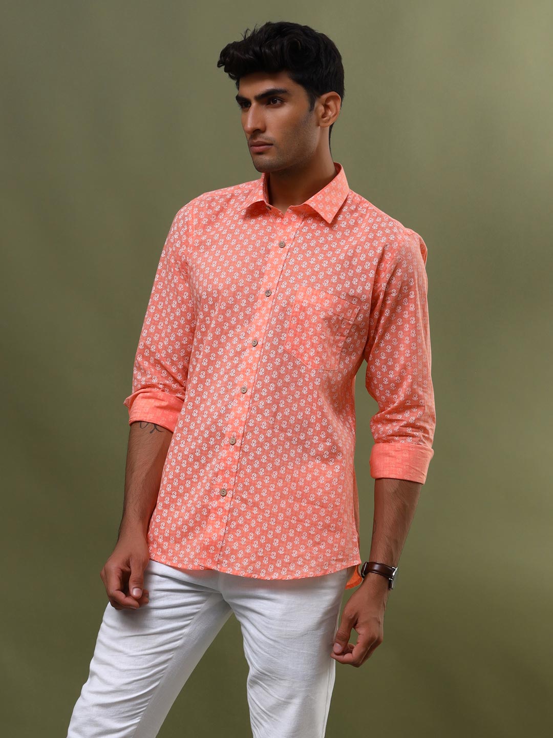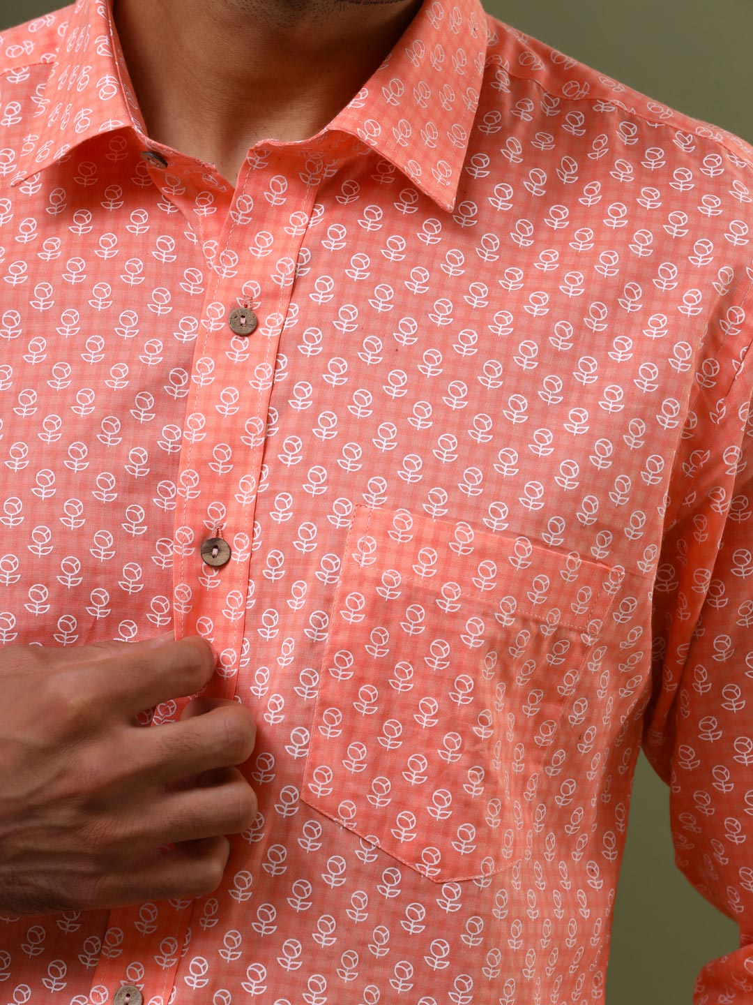 Pink Blossom Cotton Printed Shirt has a very pretty colour and can be styled for casual or formal occasions.