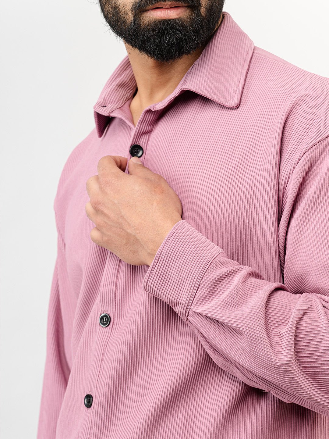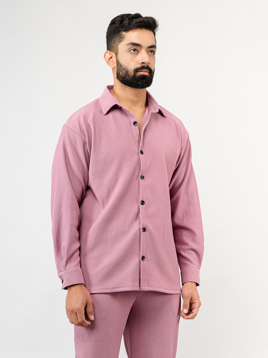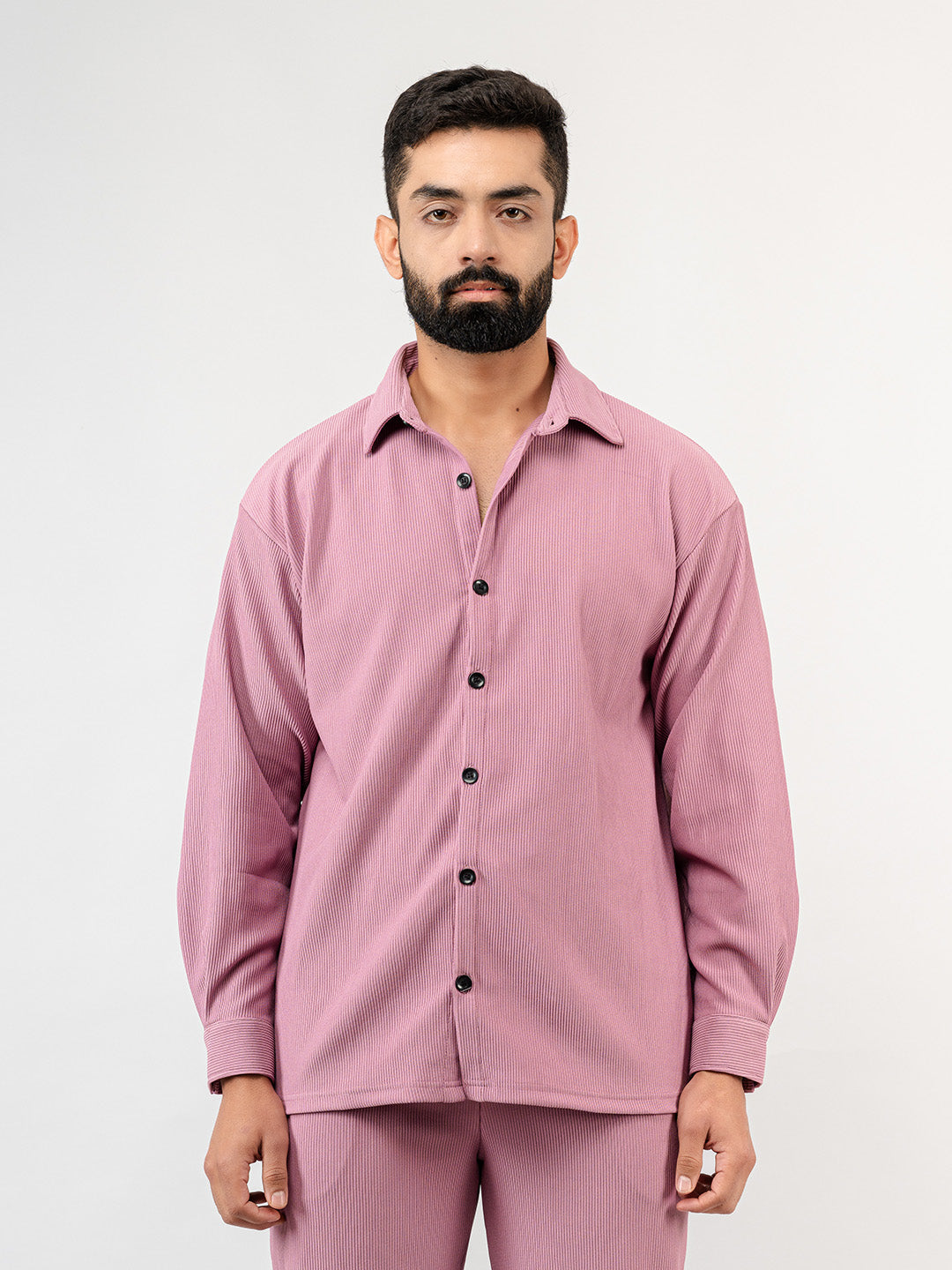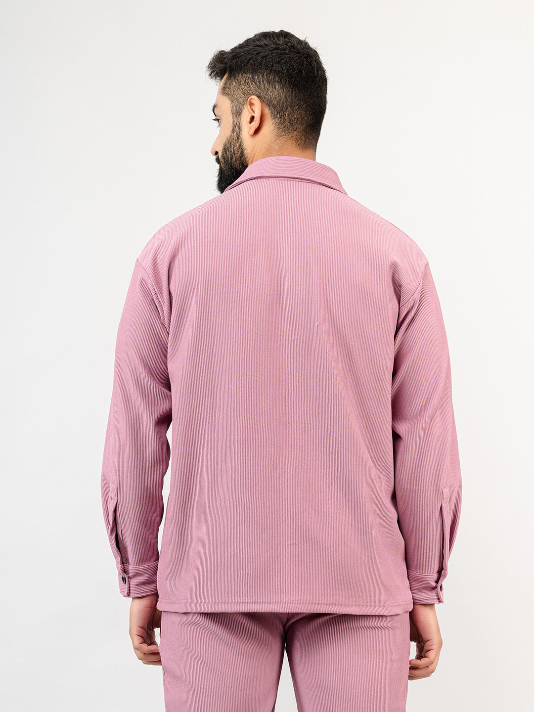 This pink cord shirt is a stylish and refreshing addition to your wardrobe. Made from soft corduroy fabric, it offers a smooth texture and a premium feel. Designed with full sleeves, it combines warmth and elegance, making it perfect for various occasions.