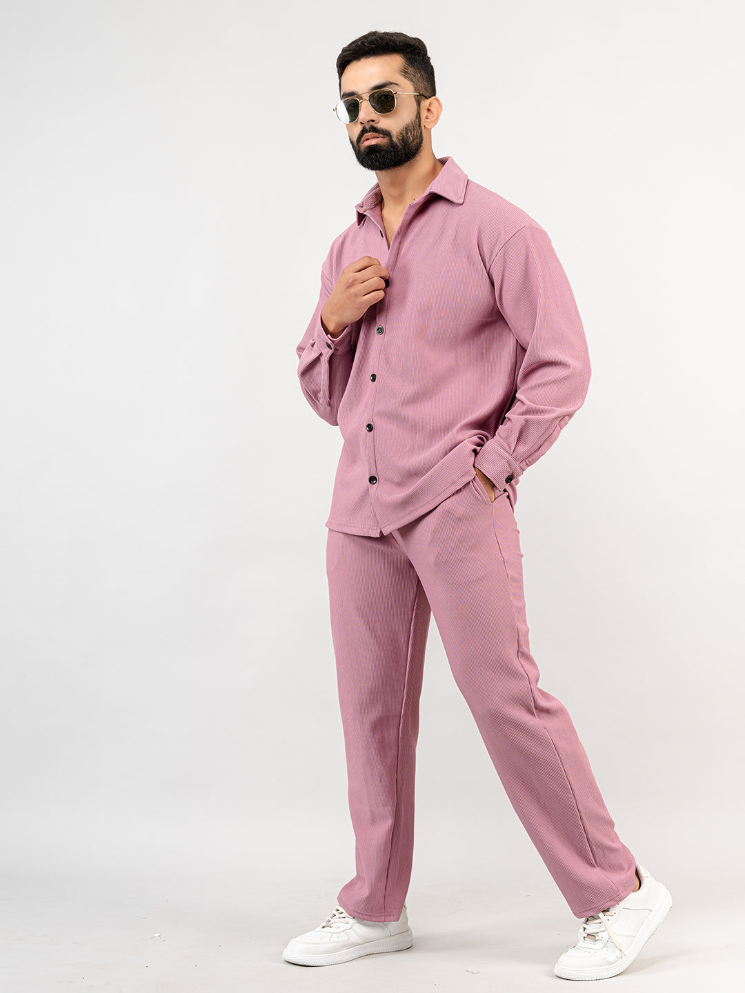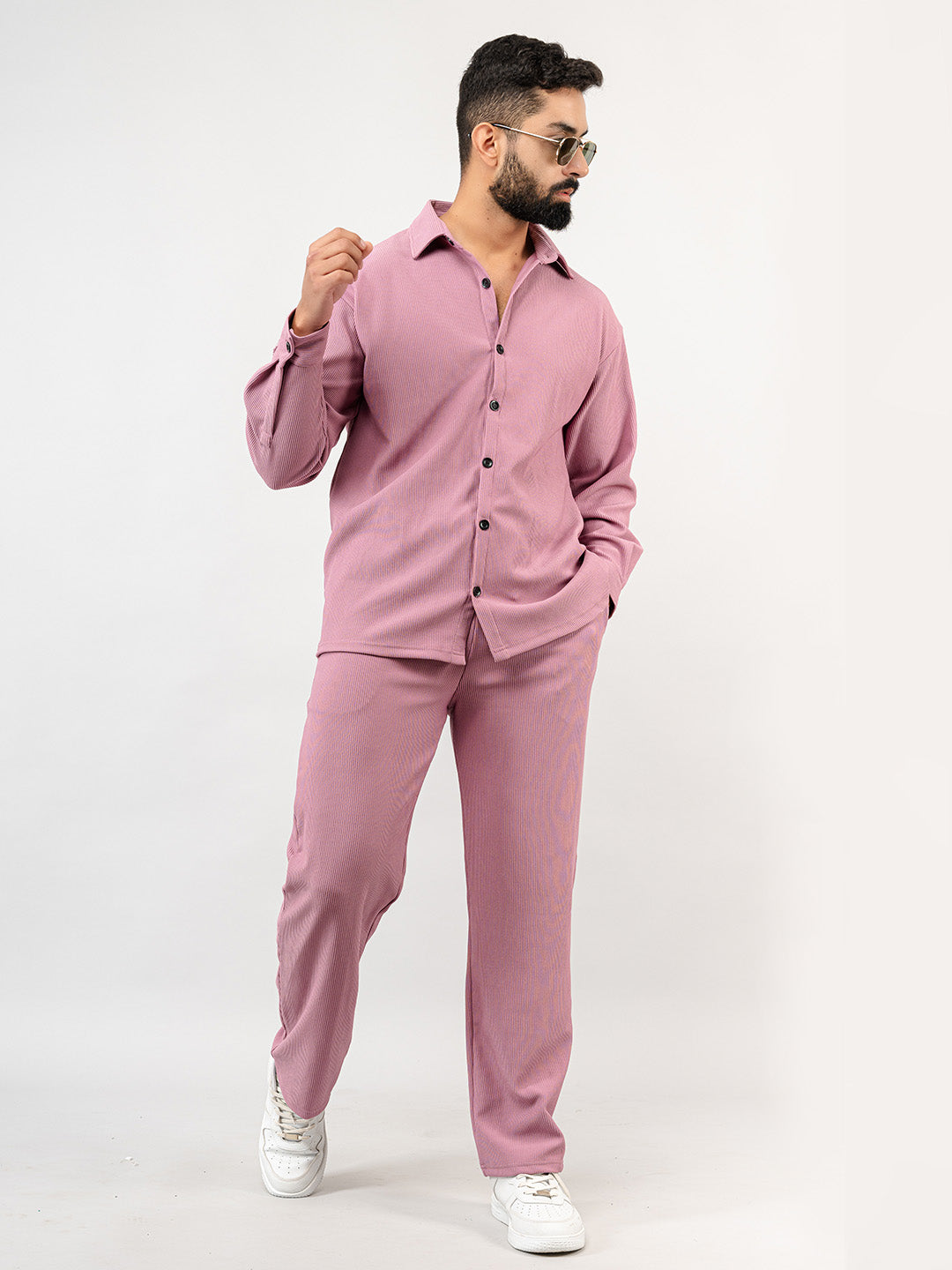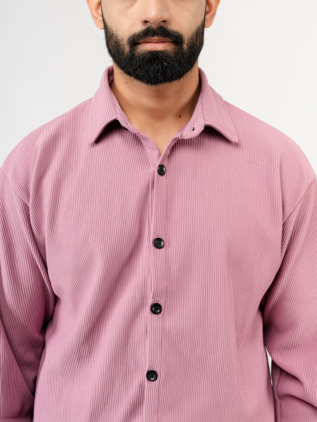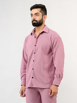 This pink cord shirt is a stylish and refreshing addition to your wardrobe. Made from soft corduroy fabric, it offers a smooth texture and a premium feel. Designed with full sleeves, it combines warmth and elegance, making it perfect for various occasions.