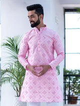 About The Product- Men’S Straight Pink Mirror Work Embroidered Dupion Silk Mens Kurta Is Lightweight And Comfortable. This Full Sleeve Kurta Is All Set To Take Your Style To The Next Level.