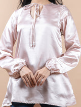 Elevate your ensemble with the Pink Satin Full Sleeves Top For Women. The full sleeves add a chic and modest touch, making it suitable for both casual and more formal occasions. Pair it with your favorite bottoms and accessories for a stylish and trendy look.