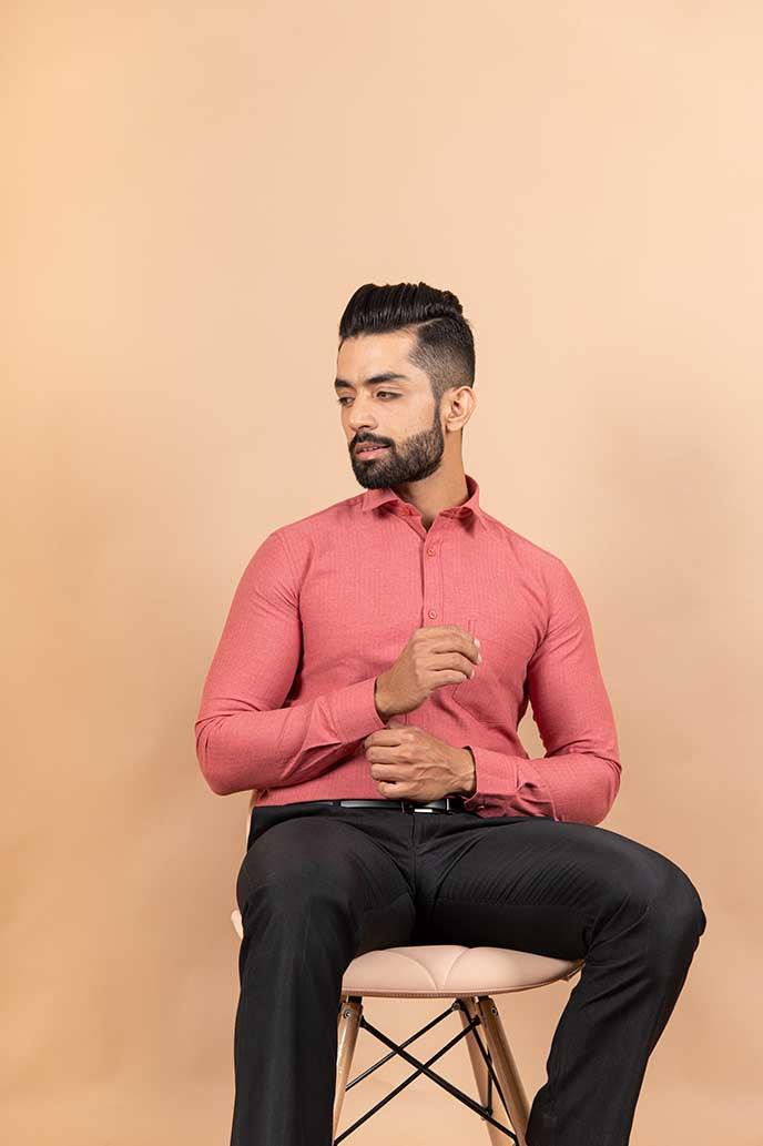 About the product- This Pink Solid Cotton Shirt is all set to take your style to the next level and make you look stunning.