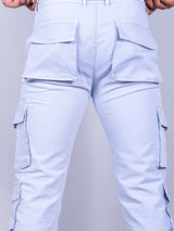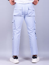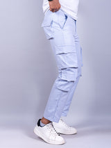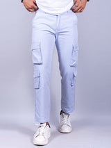Powder Blue Matty Linen Lycra Mens Cargo Pants