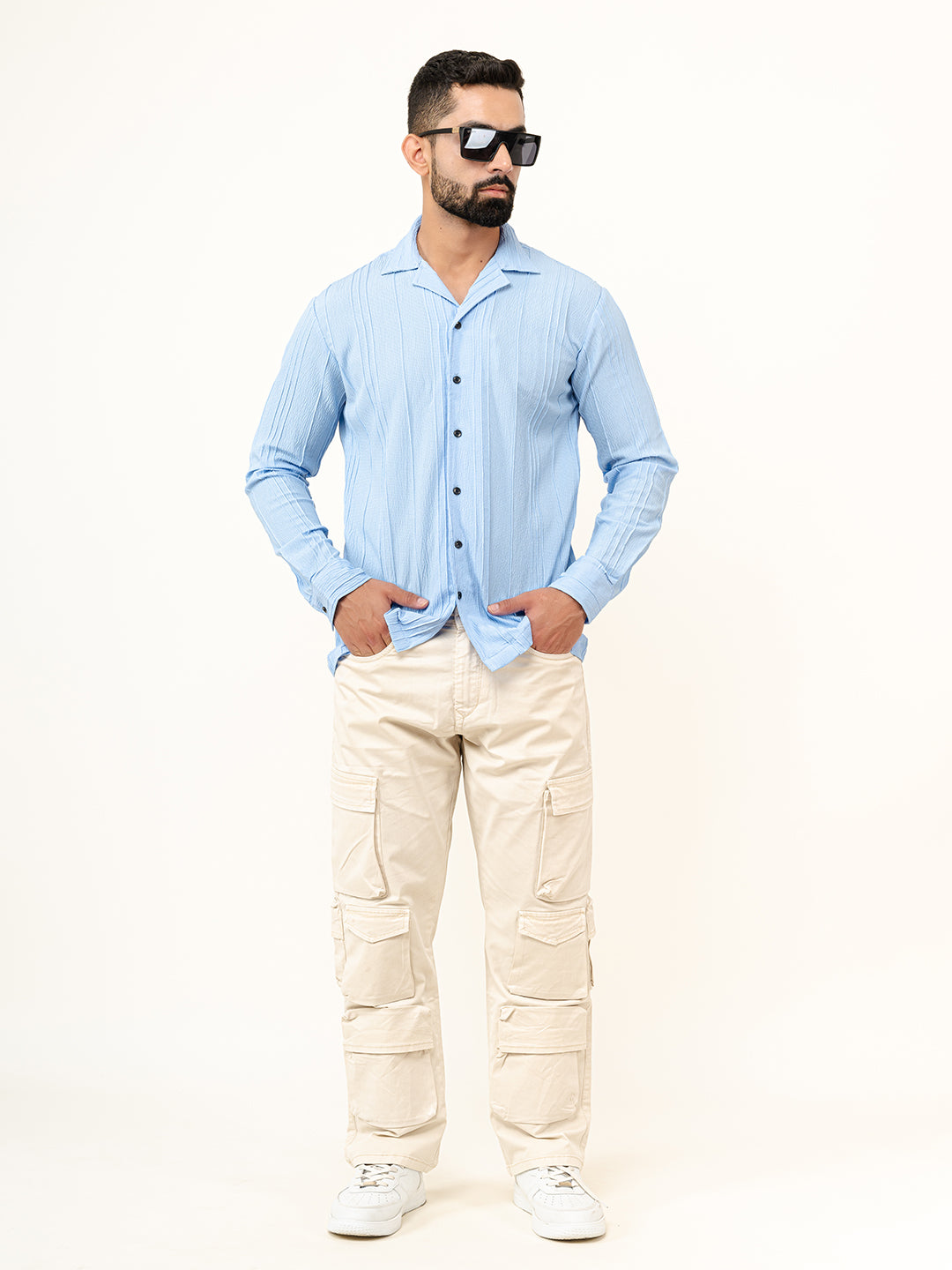 Style note - Powder Blue Popcorn Textured Shirt adores your body. When you wear it, you feel your personality different. Every texture and every colors speaks and gives your better comfort and feeling