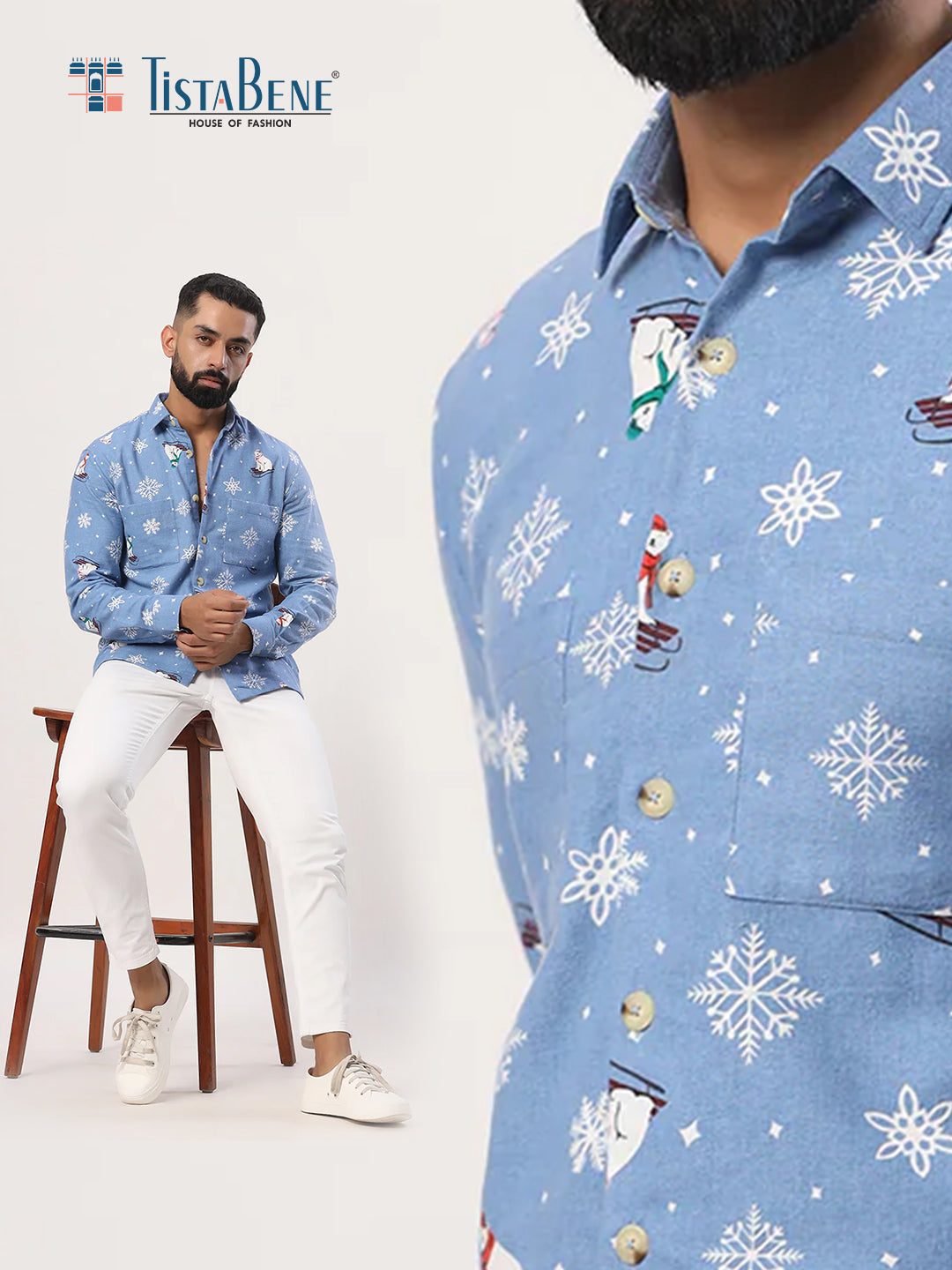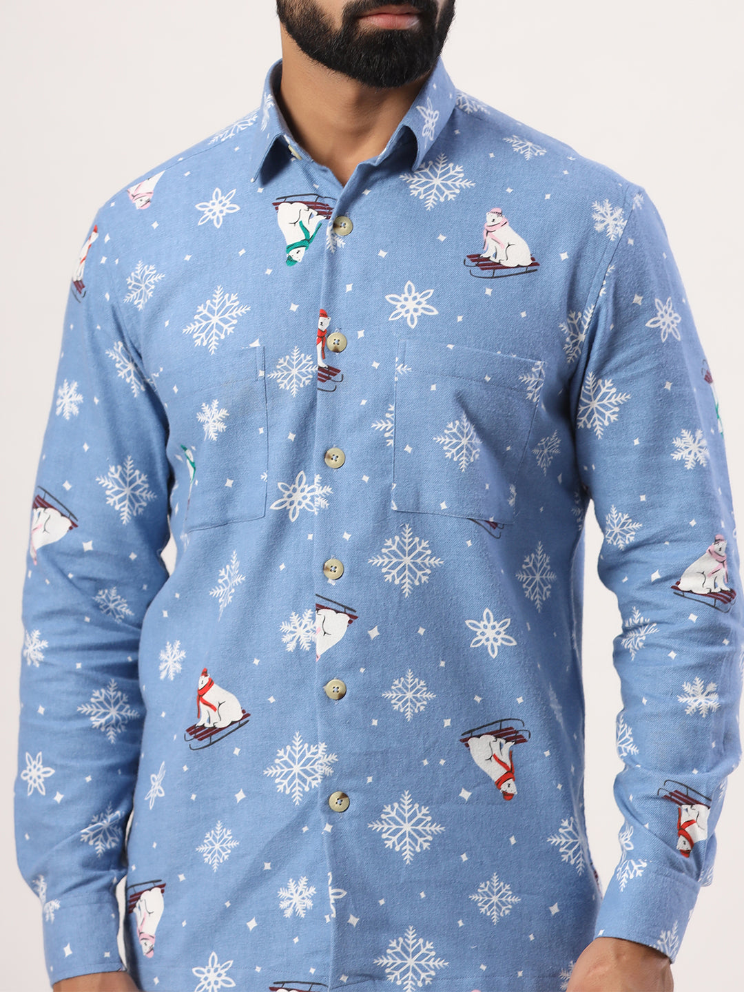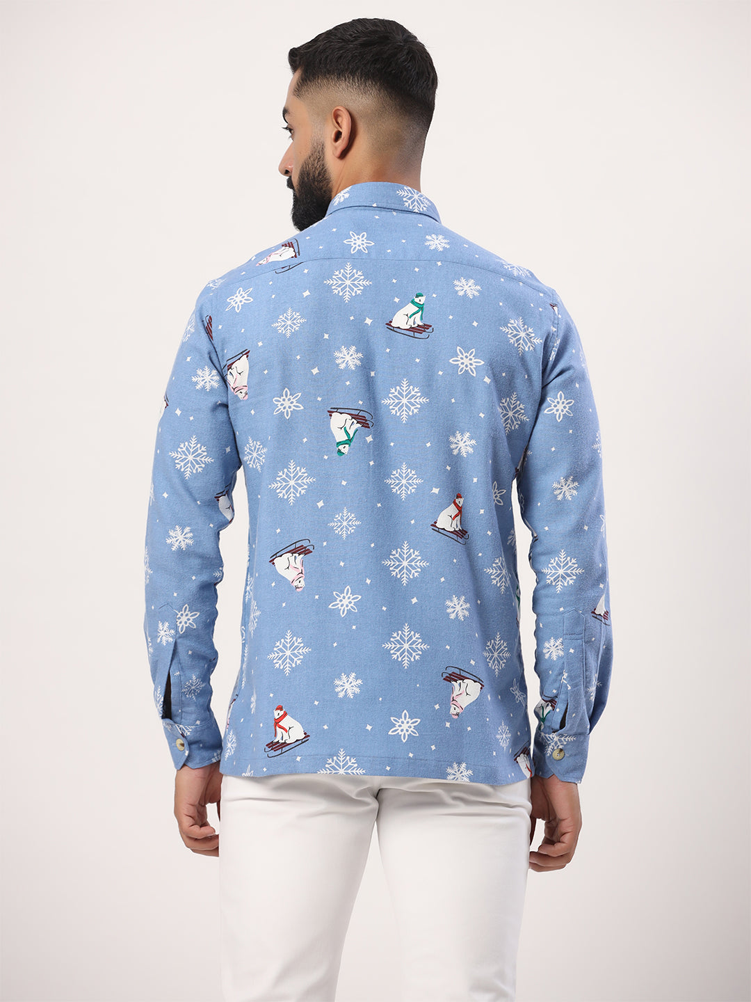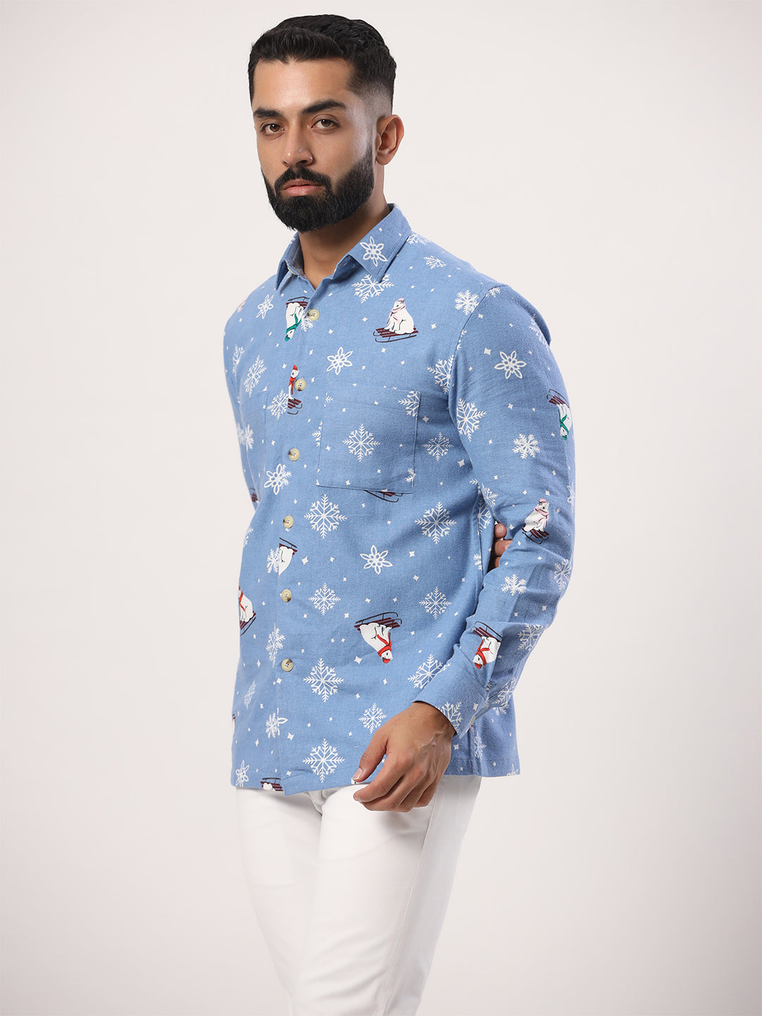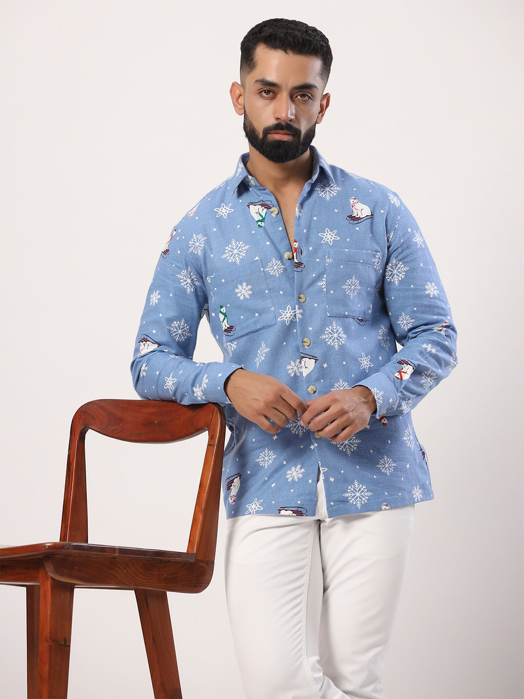 Style Note : Pair This Blue Printed Shirt with Black Cargo Pants and wear brown shoes to complete the look.