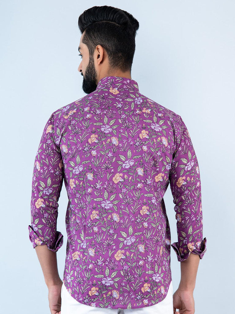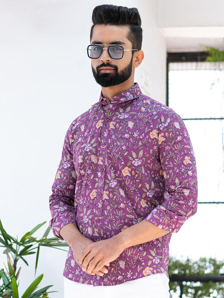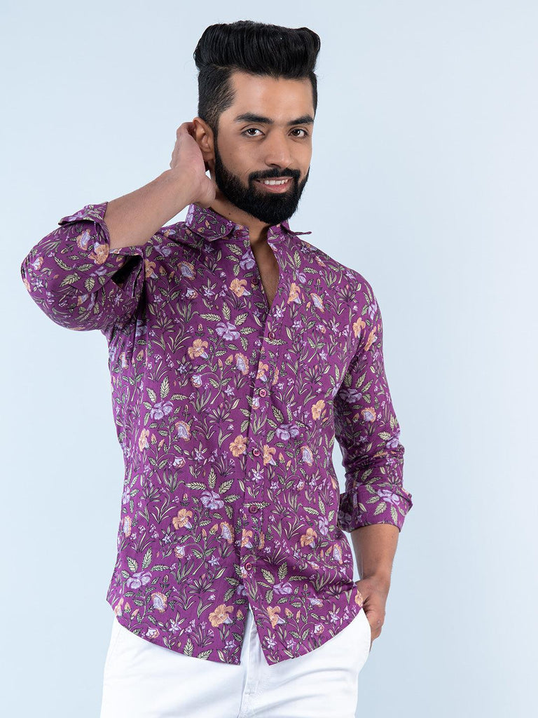 About The Product- This Beautifully Designed Purple Chintz Printed Full Sleeves Cotton Shirt Is A Unique Shirt As It Has Its Own Designer Pattern.