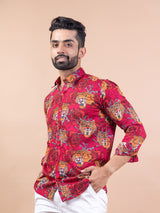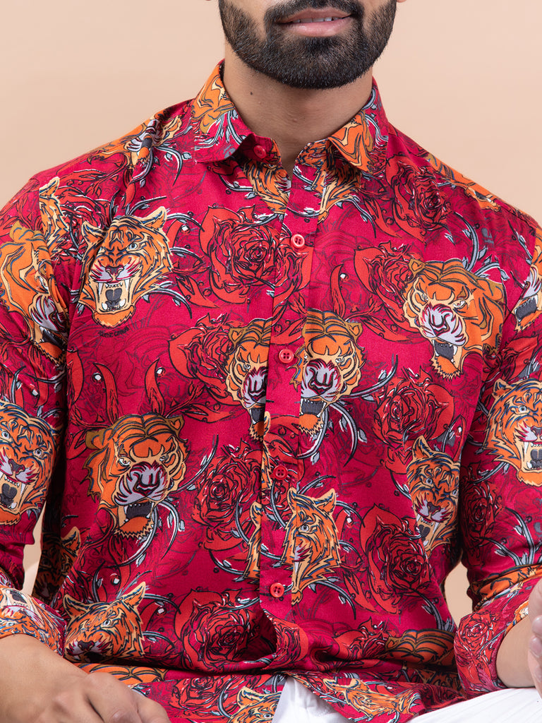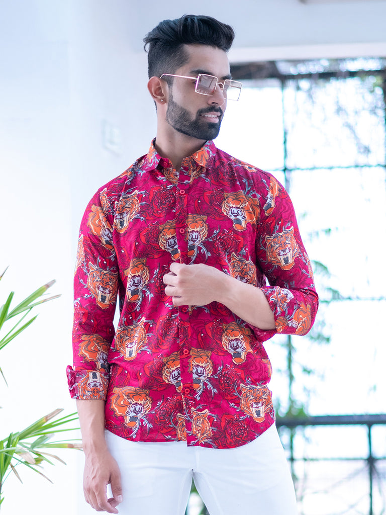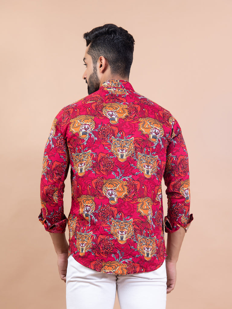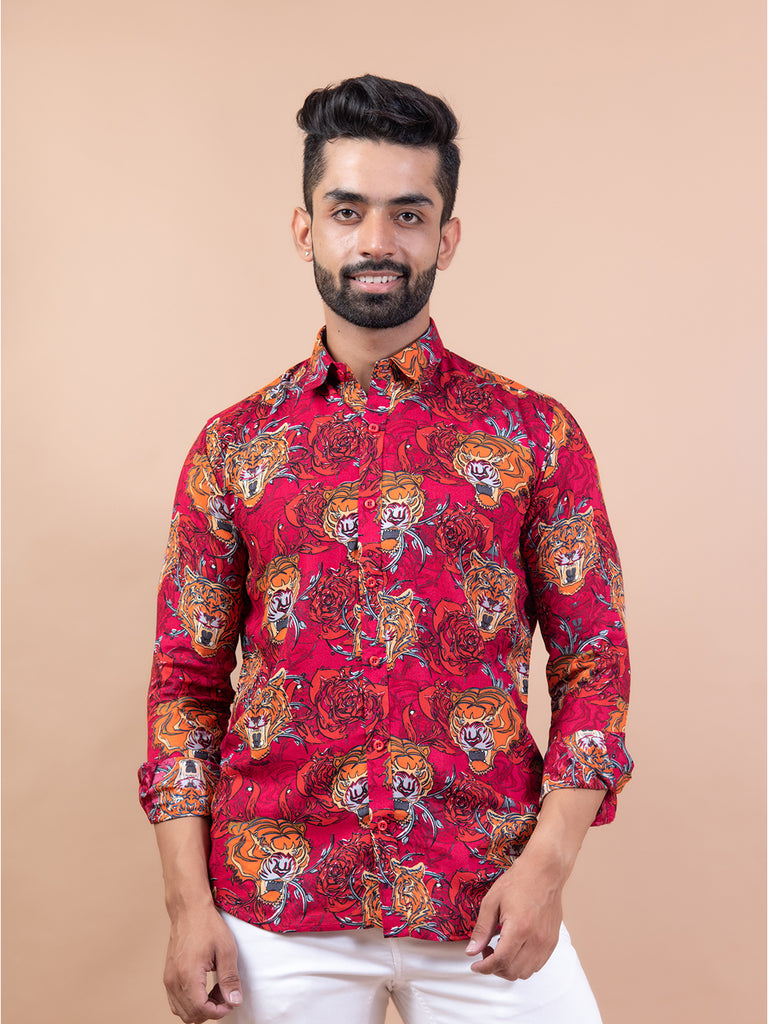 About The Product- Refresh Your Wardrobe With A Red Animal Print Giza Cotton Full Sleeves Shirt Which Is Comfortable And Uniquely Designed To Make You Look Stunning.
