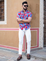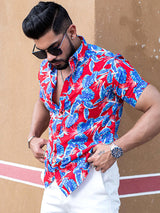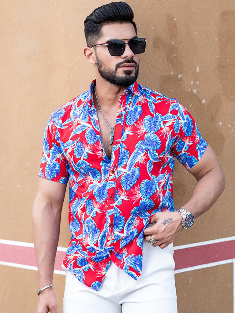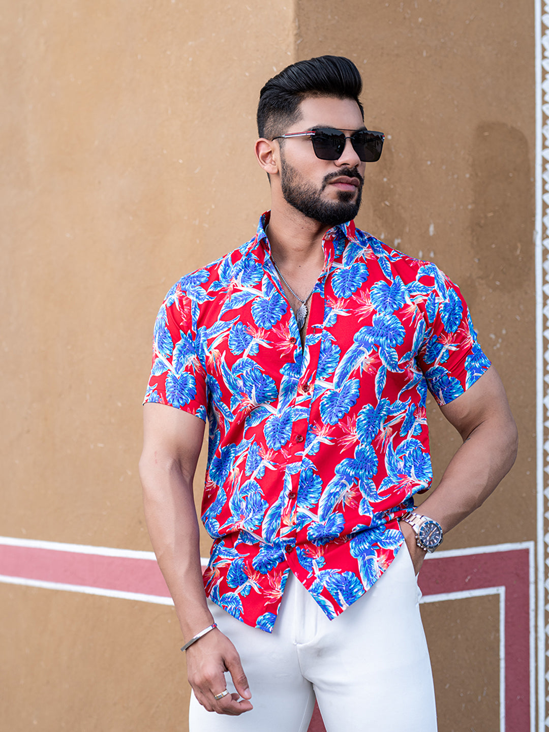 About the product: This Red Tropical Leaf Printed Half Sleeves Crepe Shirt is made to make you look smart. This comfortable shirt is definitely a must in your wardrobe.