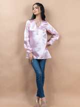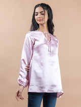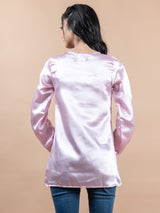 Elevate your ensemble with the Rosy Pink Satin Full Sleeves Top For Women. The full sleeves add a chic and modest touch, making it suitable for both casual and more formal occasions. Pair it with your favorite bottoms and accessories for a stylish and trendy look.
