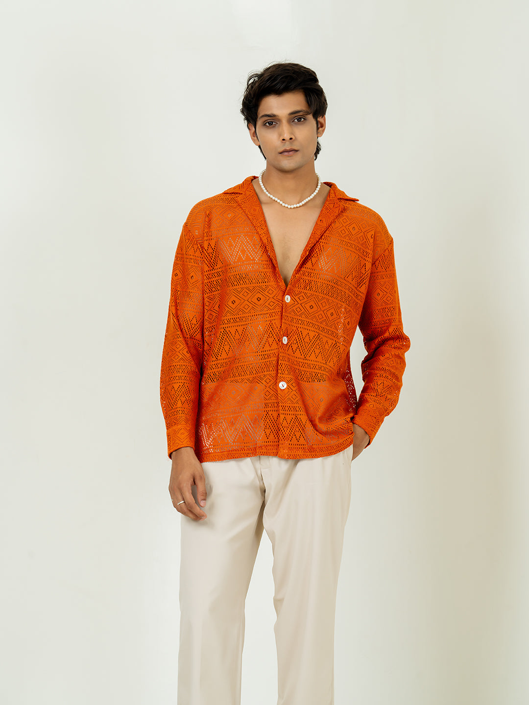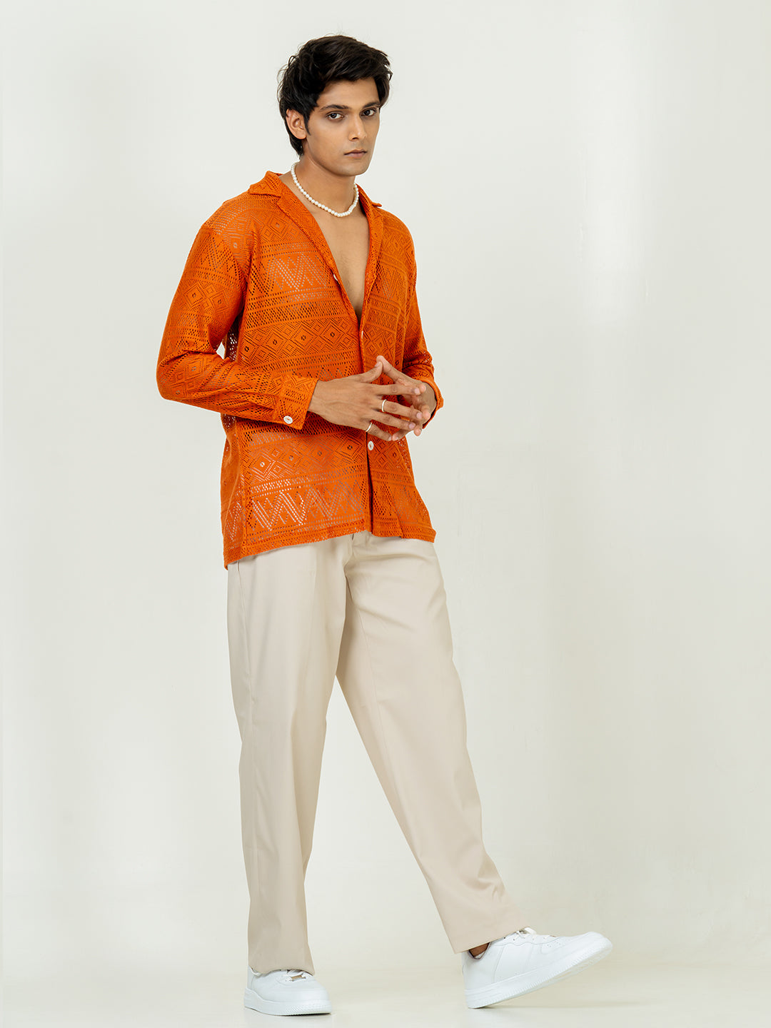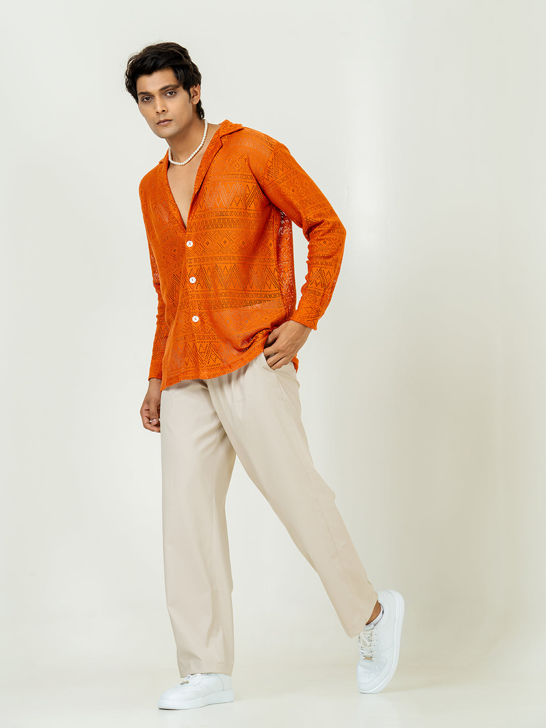 About the product- Explore the collection of beautifully designed shirts from Tistabene. This Rust Crochet Full Sleeves Cotton Shirt is your wardrobe essential and makes you look trendy!