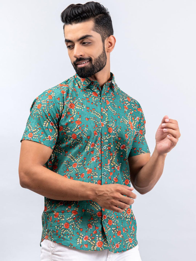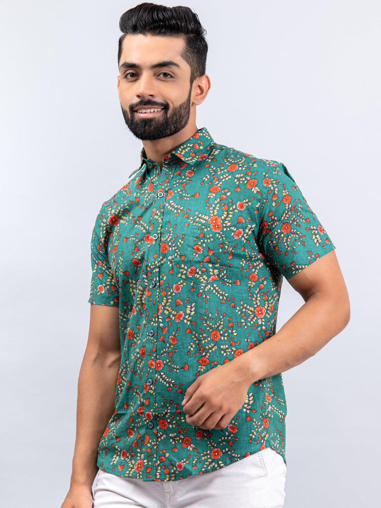 About the product: This sea green florescence printed cotton shirt is make to make you look smart. This shirt is a must in your wardrobe.
