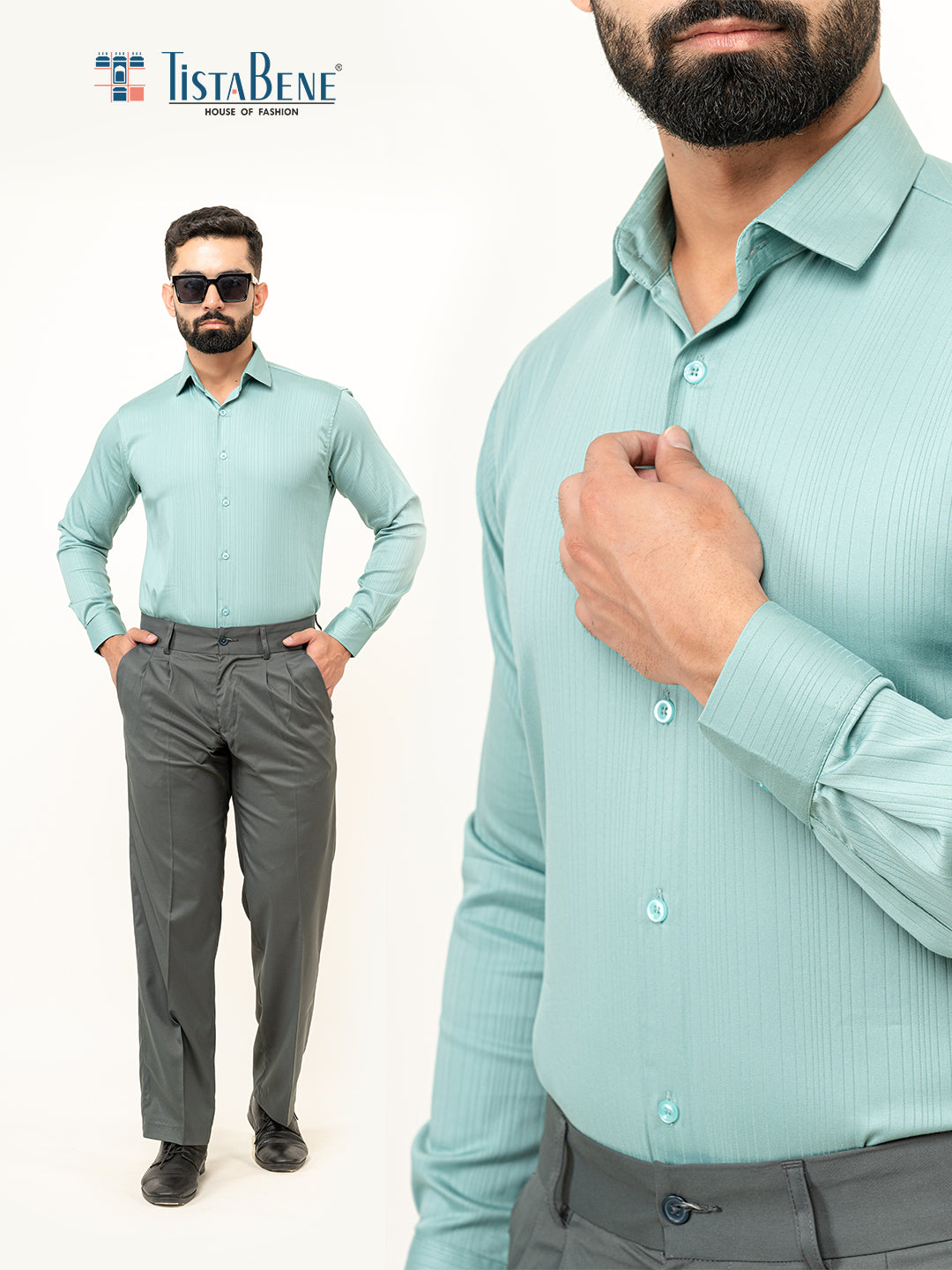 Upgrade your wardrobe with this Sea Green Full Sleeve Solid Shirt, blending modern style with all-day comfort. Designed for versatility, its sleek solid pattern makes it a perfect choice for both casual outings and formal events.