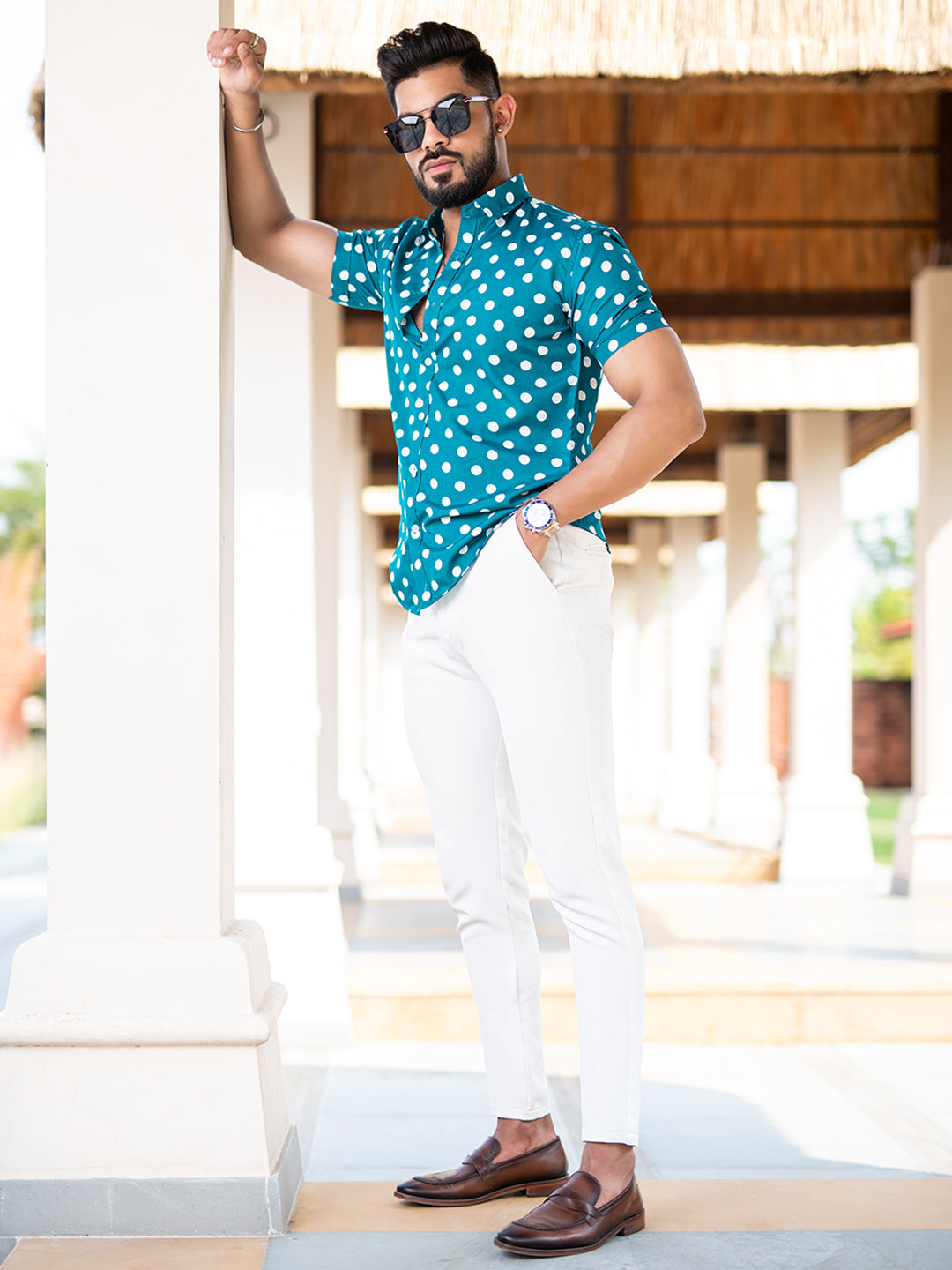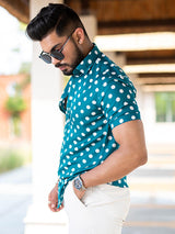 About the product: This Sea Green Polka Dots Printed Half Sleeves Crepe Shirt is made to make you look smart. This comfortable shirt is definitely a must in your wardrobe.