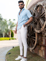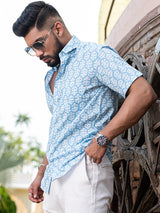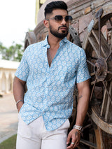 About the product: This sky blue block printed half sleeves cotton shirt is made to make you look smart. This comfortable shirt is a must inside your wardrobe.