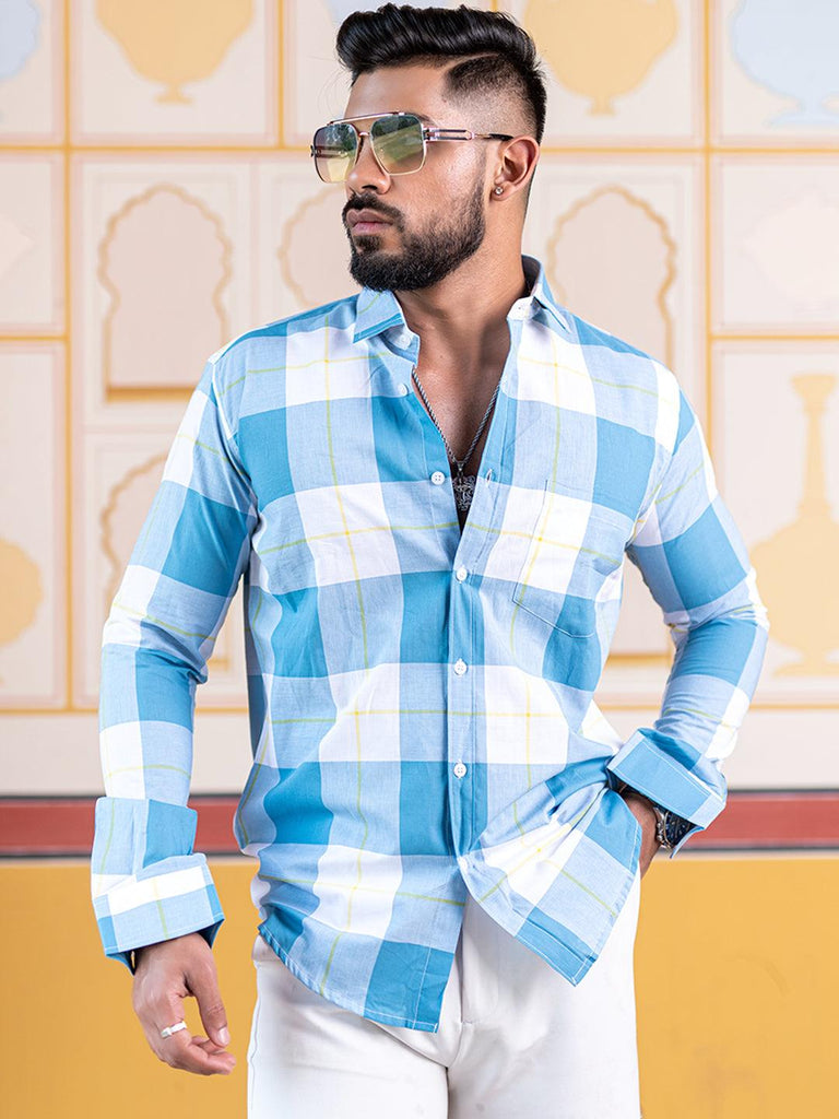 About the product- Explore the collection of beautifully designed shirts from Tistabene. This Sky Blue Checks Full Sleeves Giza Cotton Shirt is your wardrobe essential and makes you look trendy!