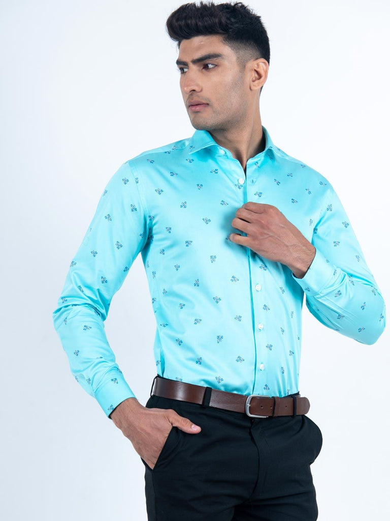 About the product: This Sky Blue Giza Cotton Printed Men Shirt is made to make you look smart and handsome. This shirt is so comfortable yet so stylish.