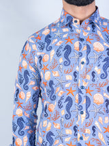 About the product: This sky blue marine life printed full sleeves cotton shirt is made to make you look smart. This comfortable shirt is a must inside your wardrobe.