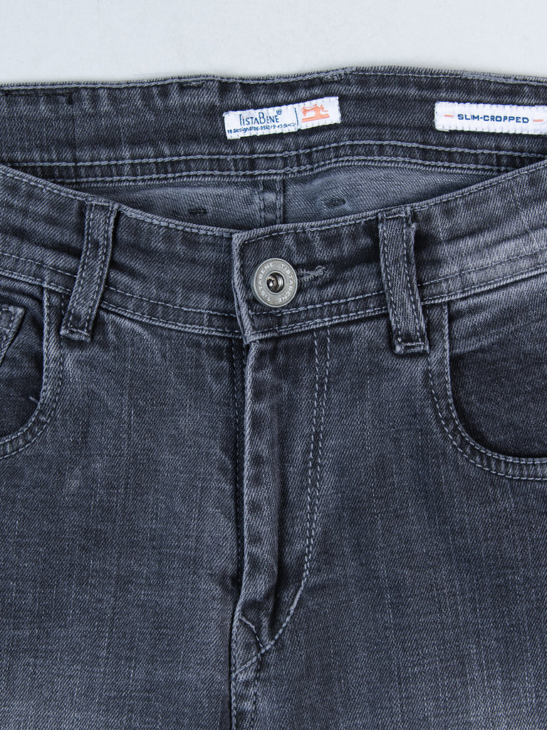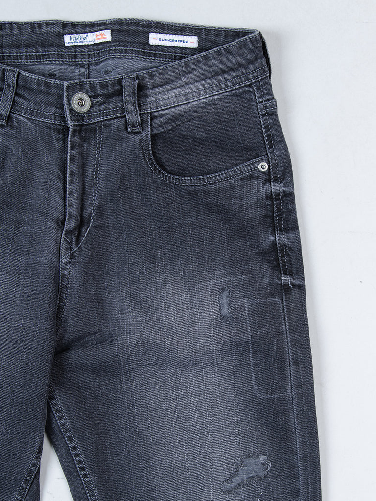 Smokey Grey Ripped Cropped Slim Fit Denim Jeans